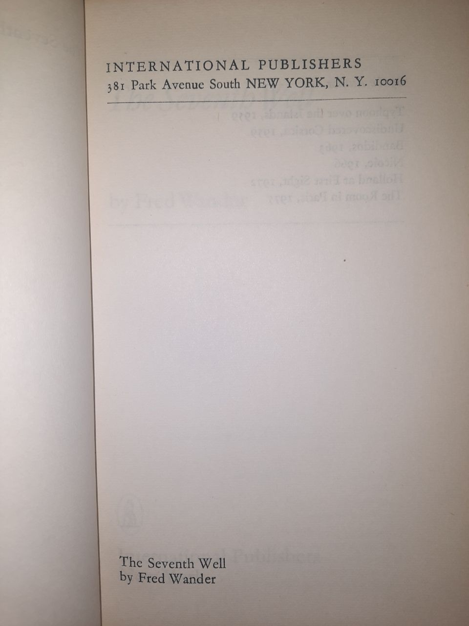 The Seventh Well | Fred Wander | 148 Pages | International Publishers, 1976.