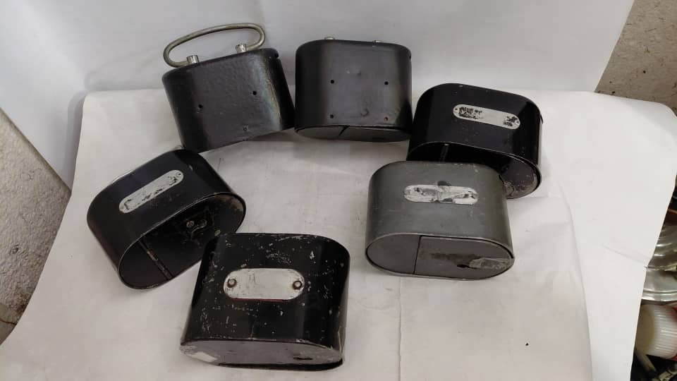 تعداد 6 عدد قلک تبلیغاتی بانک ملی دوره پهلوی فاقد قفل و کلید.فروش بصورت یکجا