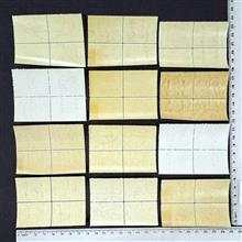 رنگ چسب بعضی از تمبرها، به خاطر کیفیت چسب آنها به زردی و قهوه ای گرایش دارد و یک ایراد محسوب نمیشود.