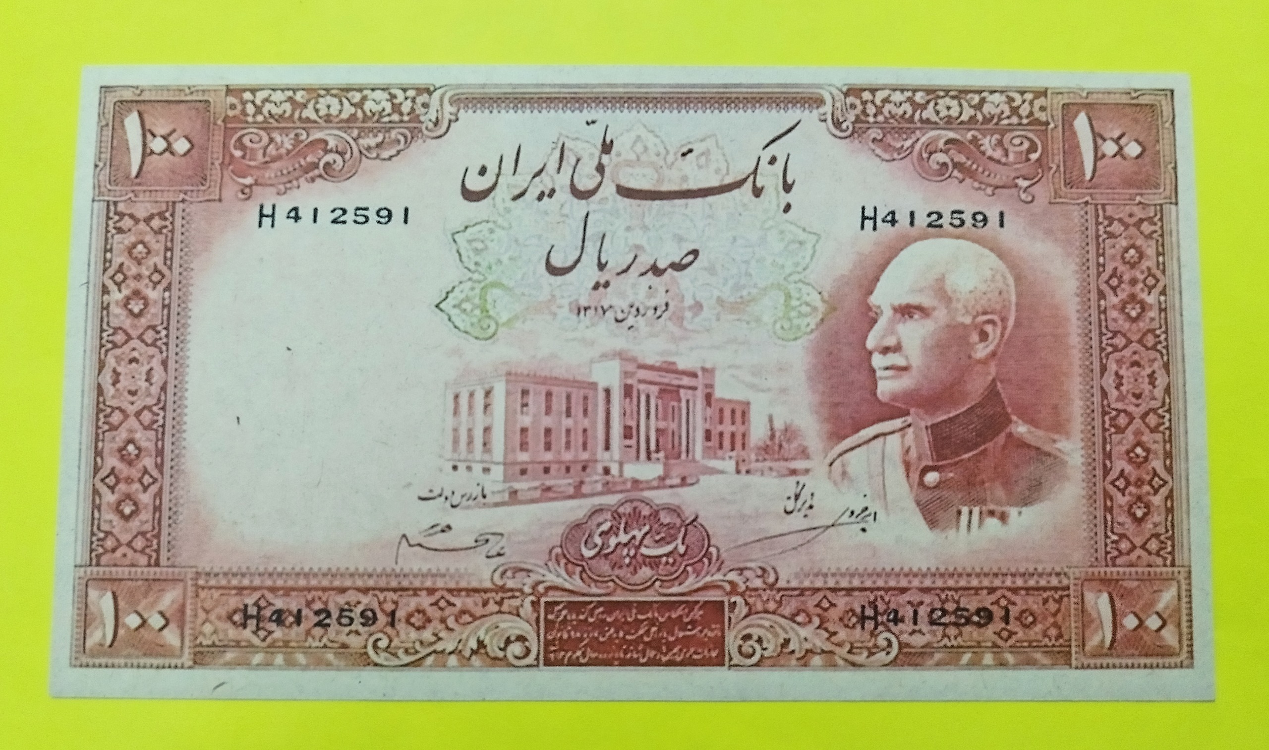 اسکناس 100 ریالی رضا شاه یک پهلوی توضیحات