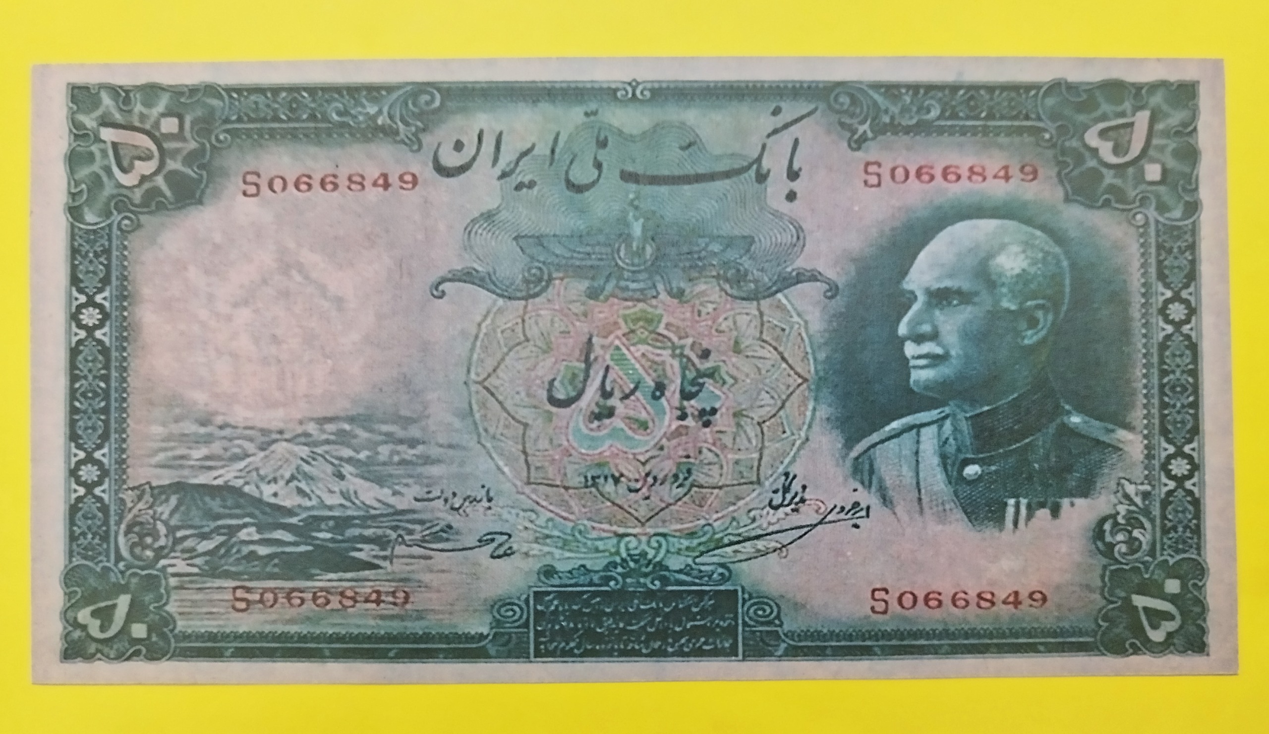 اسکناس 50 ریال رضا شاه بدون کلاه توضیحات