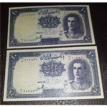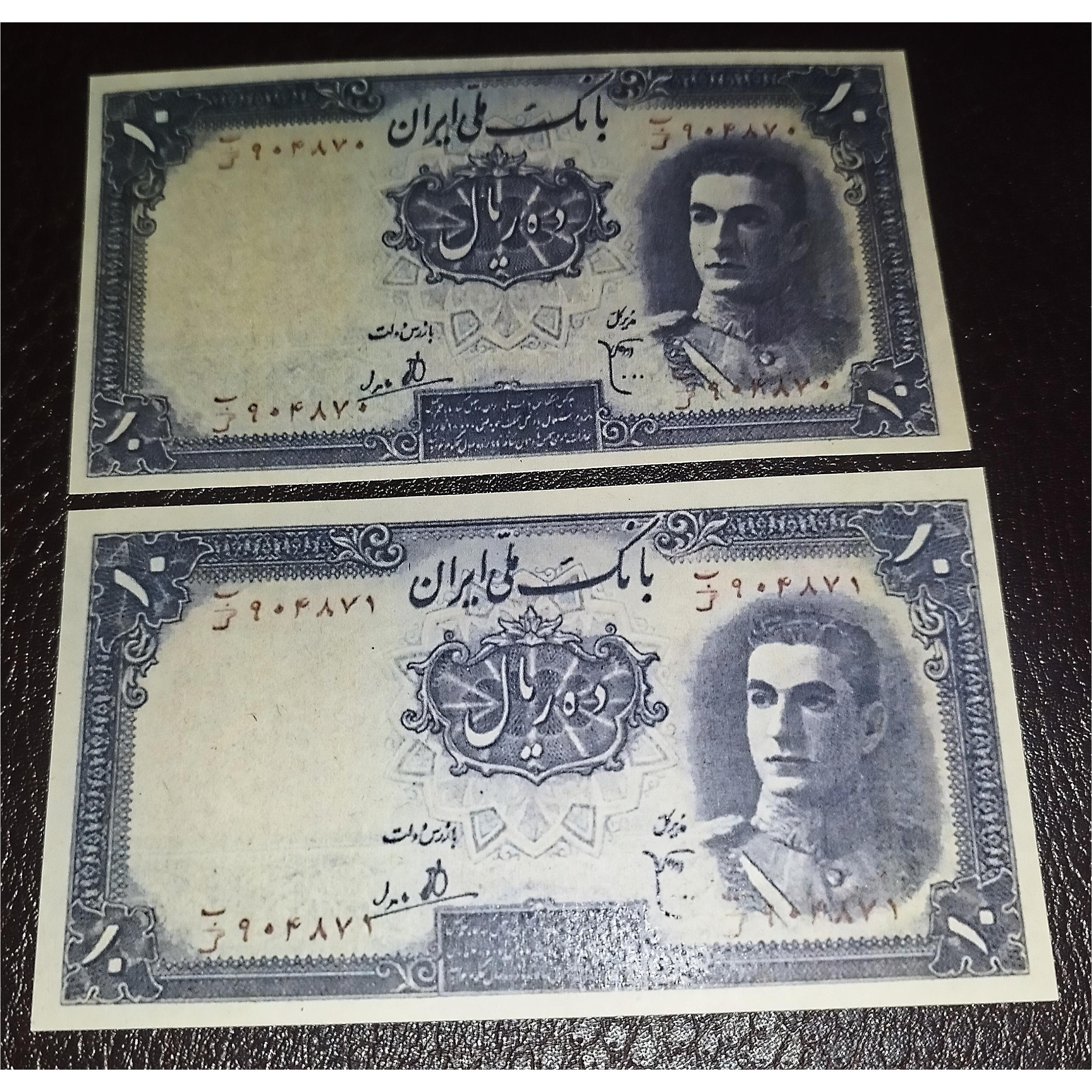 اسکناس جفت 10 ریال محمد رضا شاه توضیحات