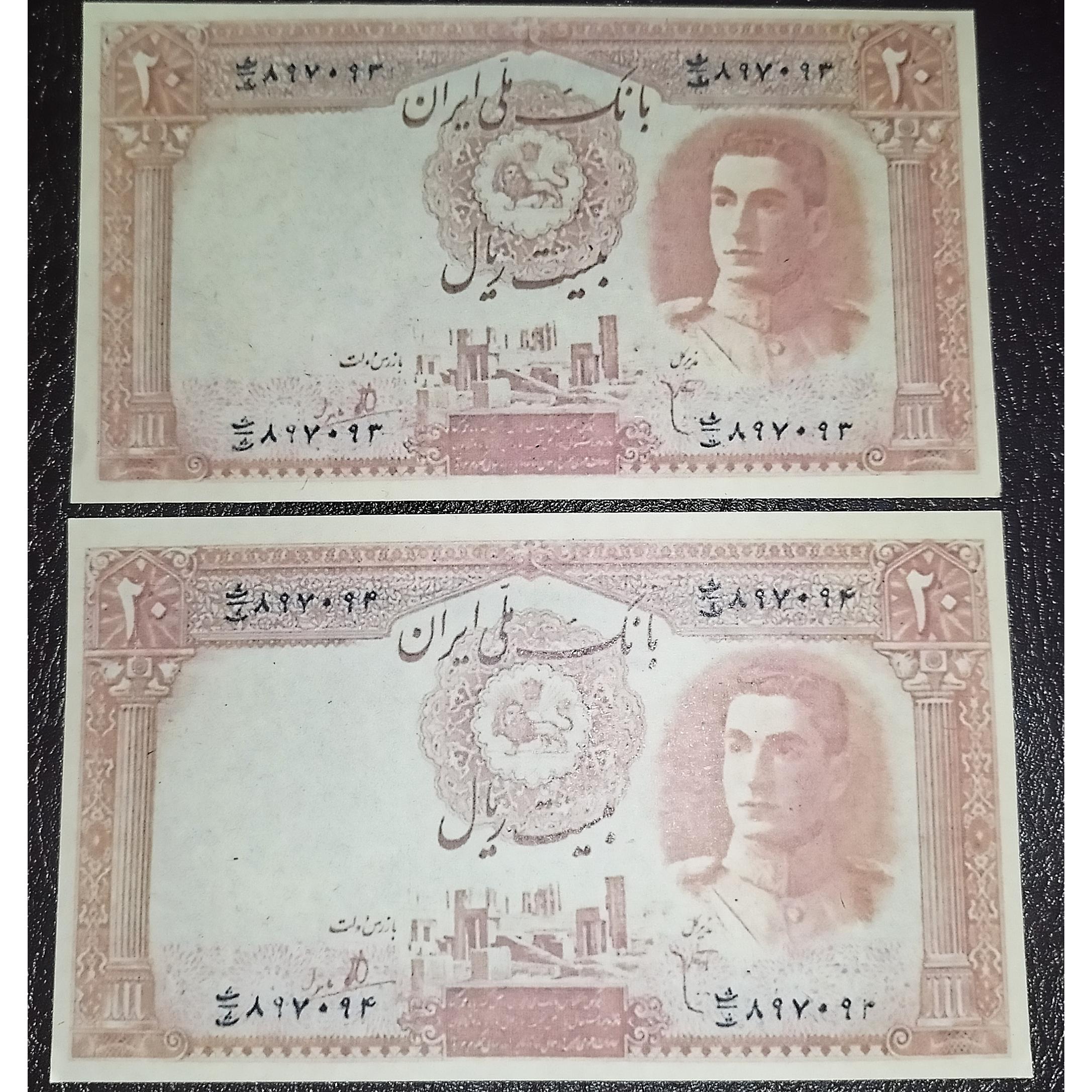 اسکناس جفت 20 ریال محمد رضا شاه توضیحات