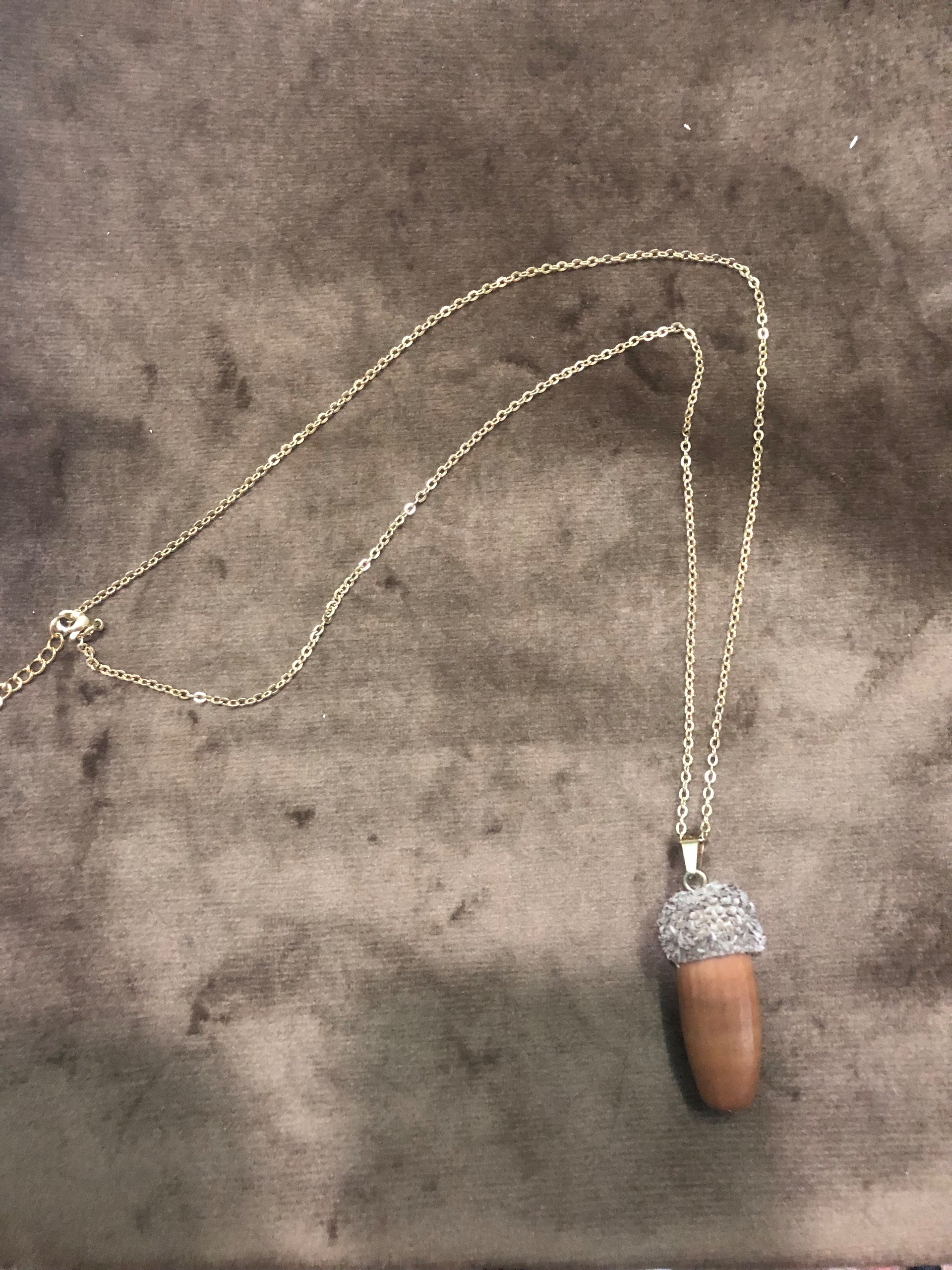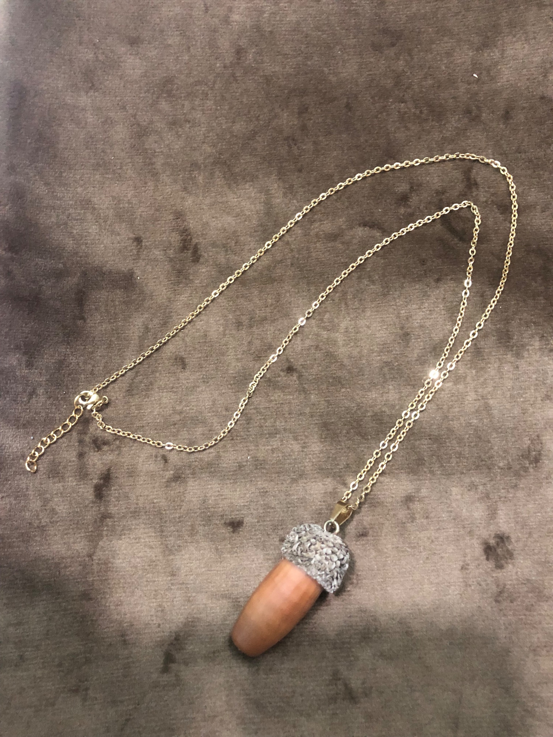 گردنبند استیل طلایی _ پلاک بلوط طبیعی
