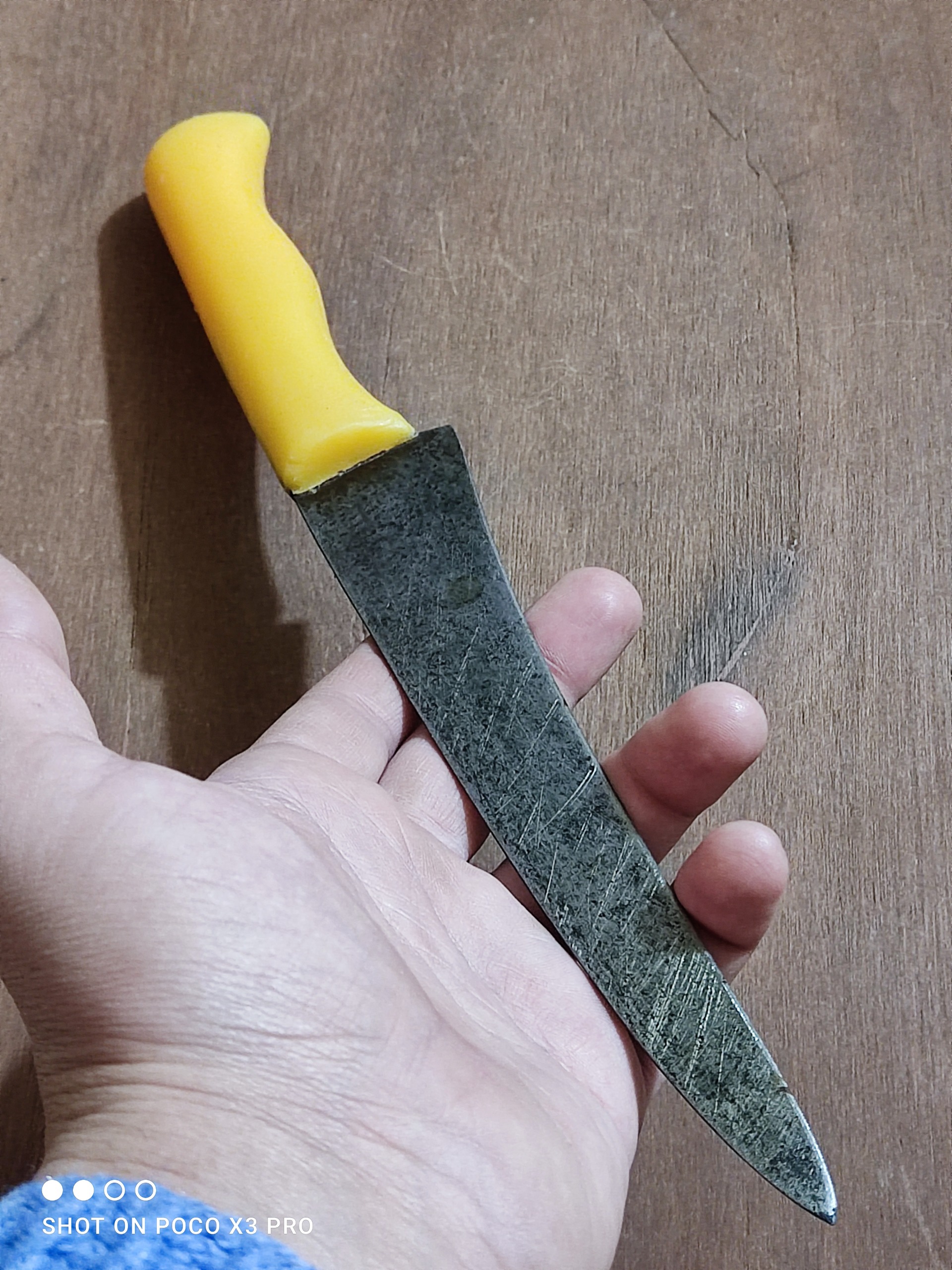 یک عدد چاقوی قدیمی تیغه فولاد جوهردار مطابق تصاویر این چاقو معروفه به چاقوی شترکش یه چاقوی خاص و کاربردی با طراحی متفاوت بسیار تمیز و بکر تیغش مدلش اینجوریه طراحی این چاقو متفاوته تیغش فولاد جوهرداره قدمت زیادی داره کاملا دستساز و کلکسبونی