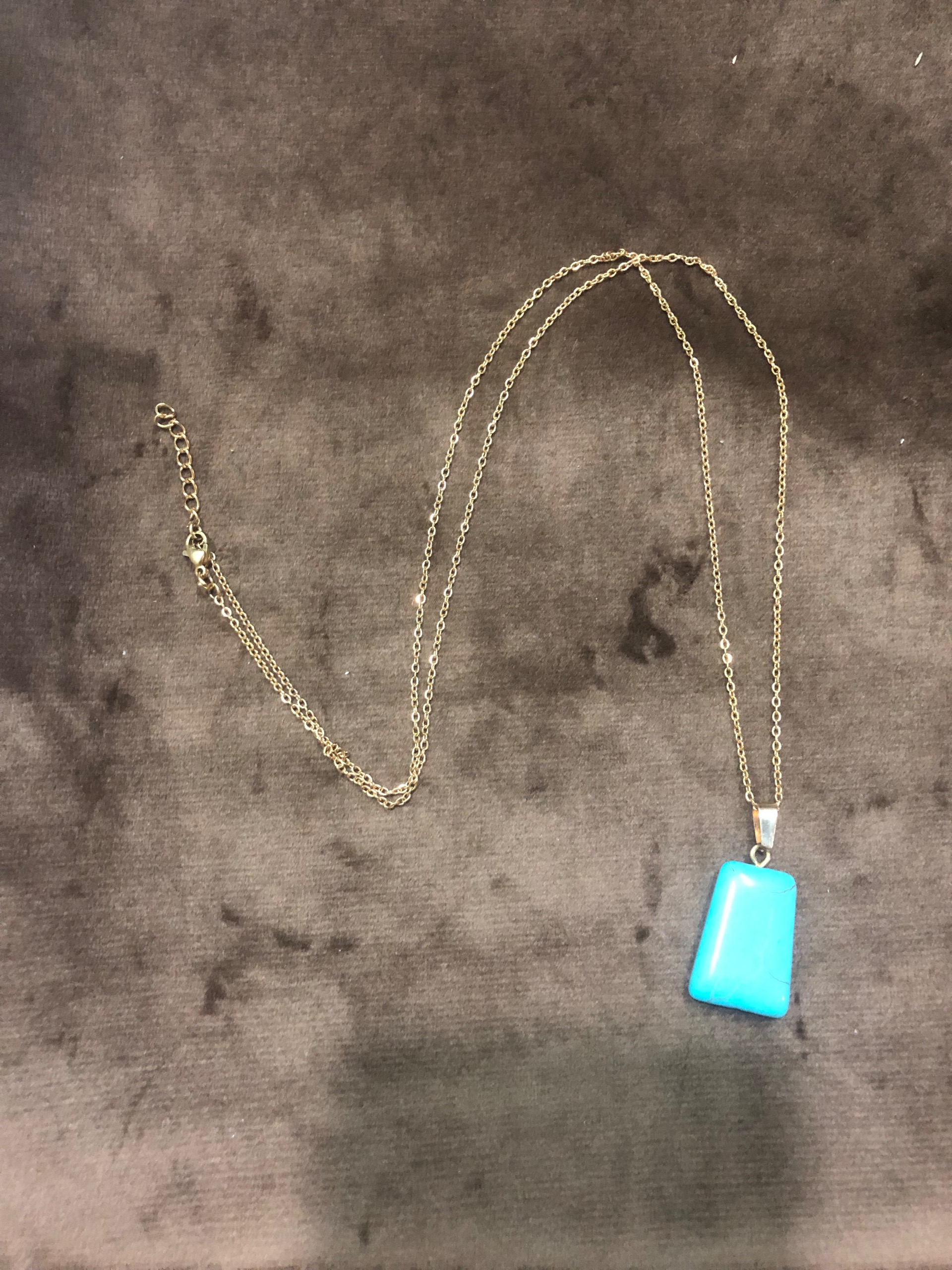 نوع کالا : گردنبند استیل طلایی نازک پلاک سنگ فیروزه ای