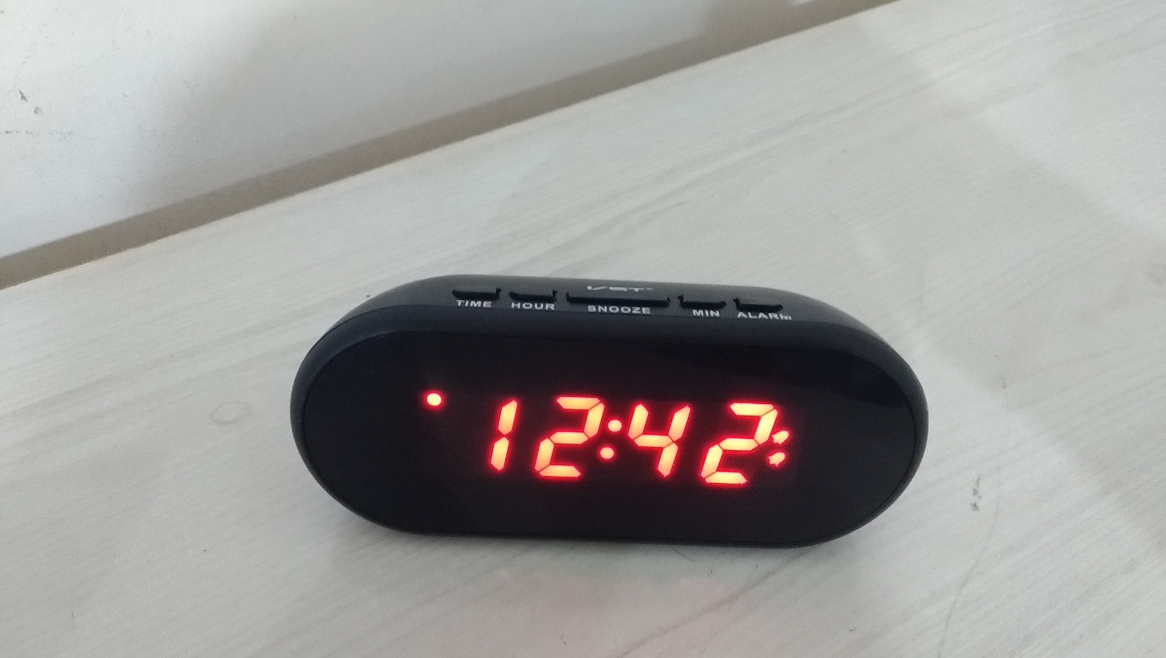 ساعت دیجیتال با دوتا باتری نیم قلم کارمیکنه فوق العاده پرنور ،دارای دو تنظیم زنگ طبق تصاویر