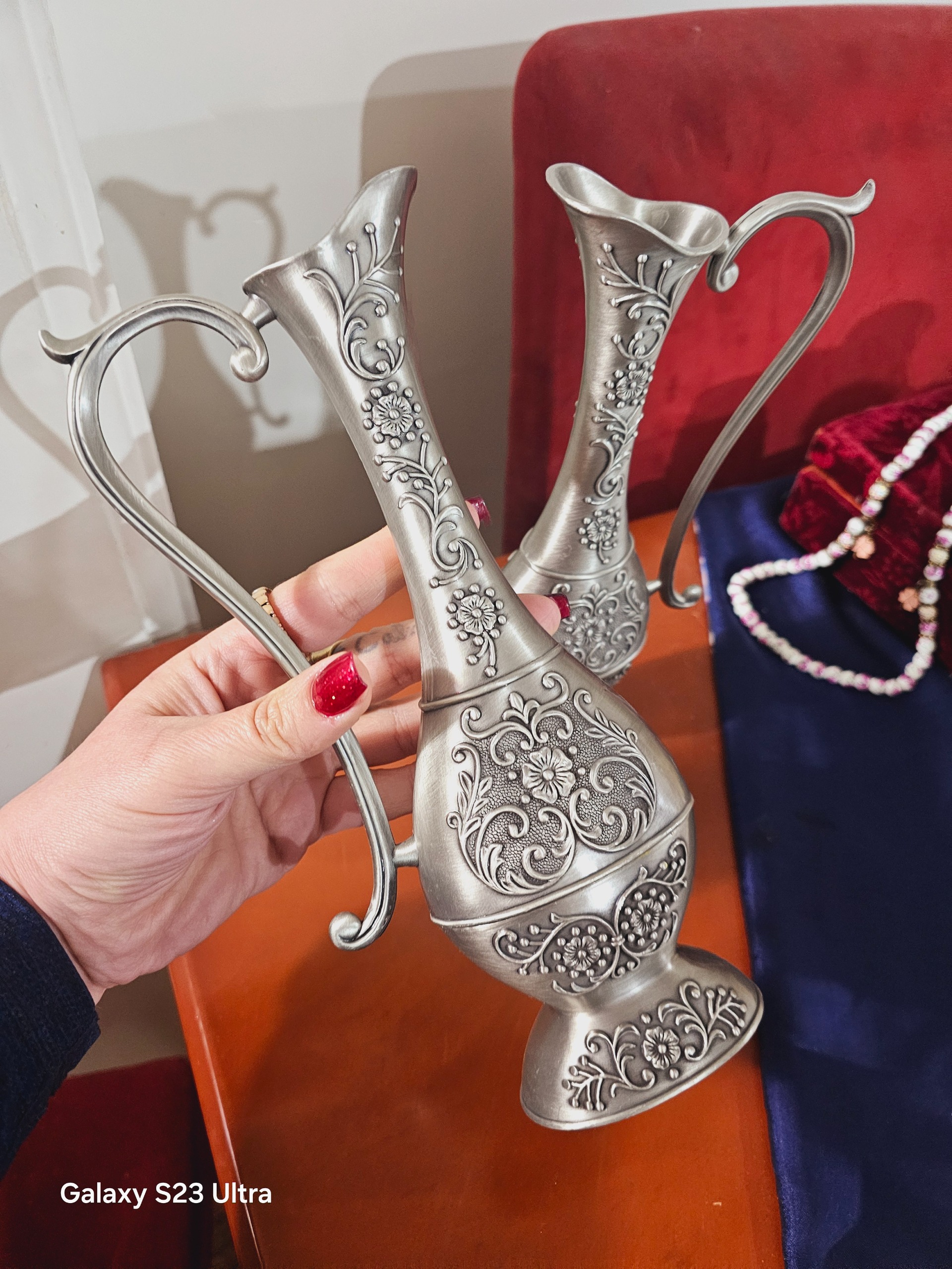 دو عدد پارچ پیوتر خوش نقش و نگار توضیحات