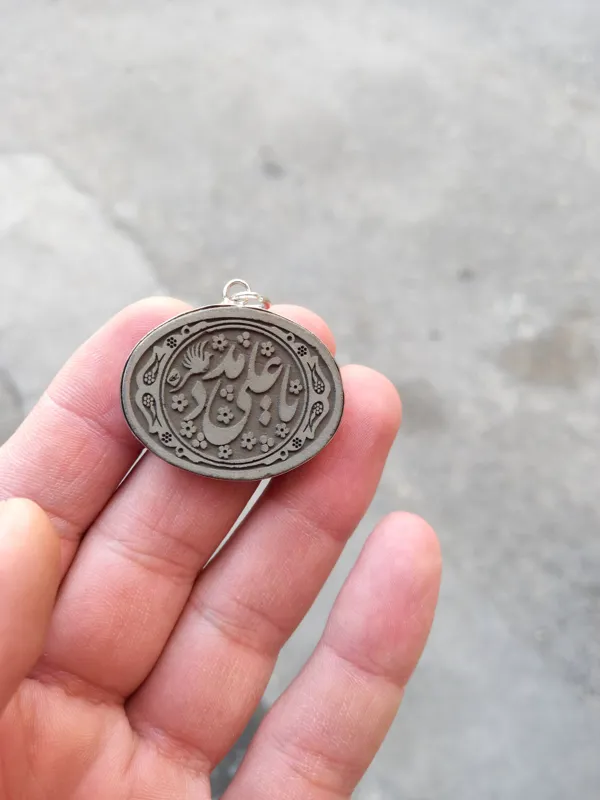 آویزسنگ یشم نقش یا علی مدد باطراحی زیبا وکیفیت خوب اندازه حدود 3سانت بدون زنجیر هدیه وکادوی ماندگار