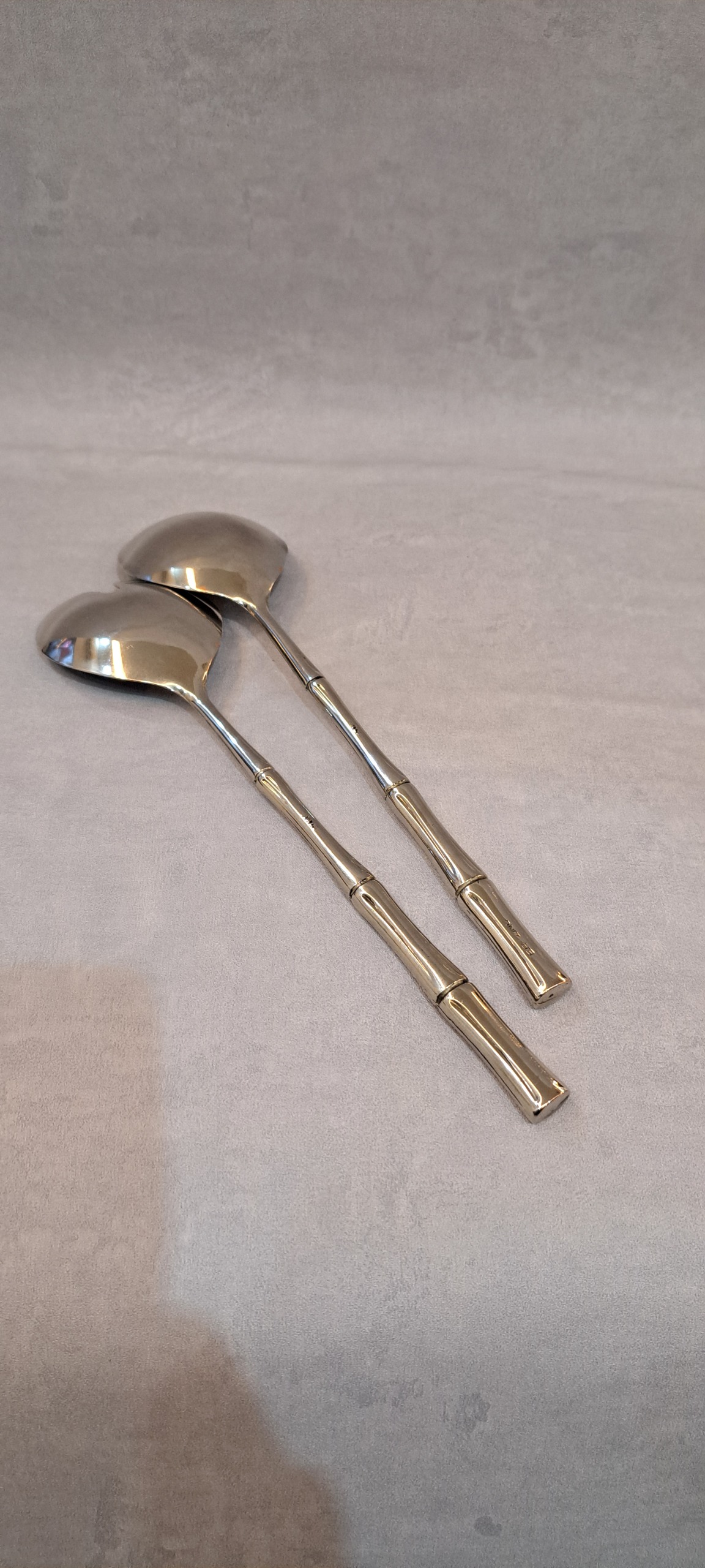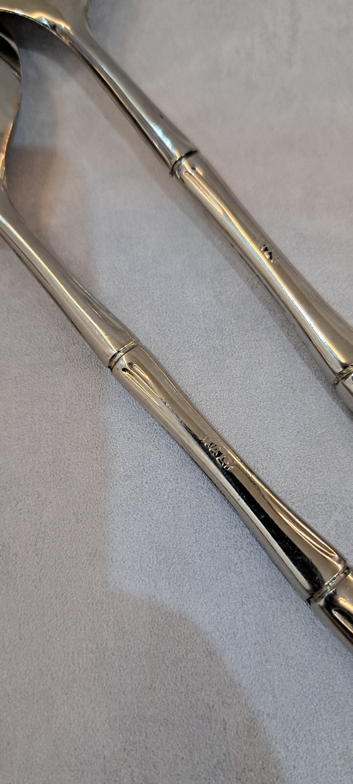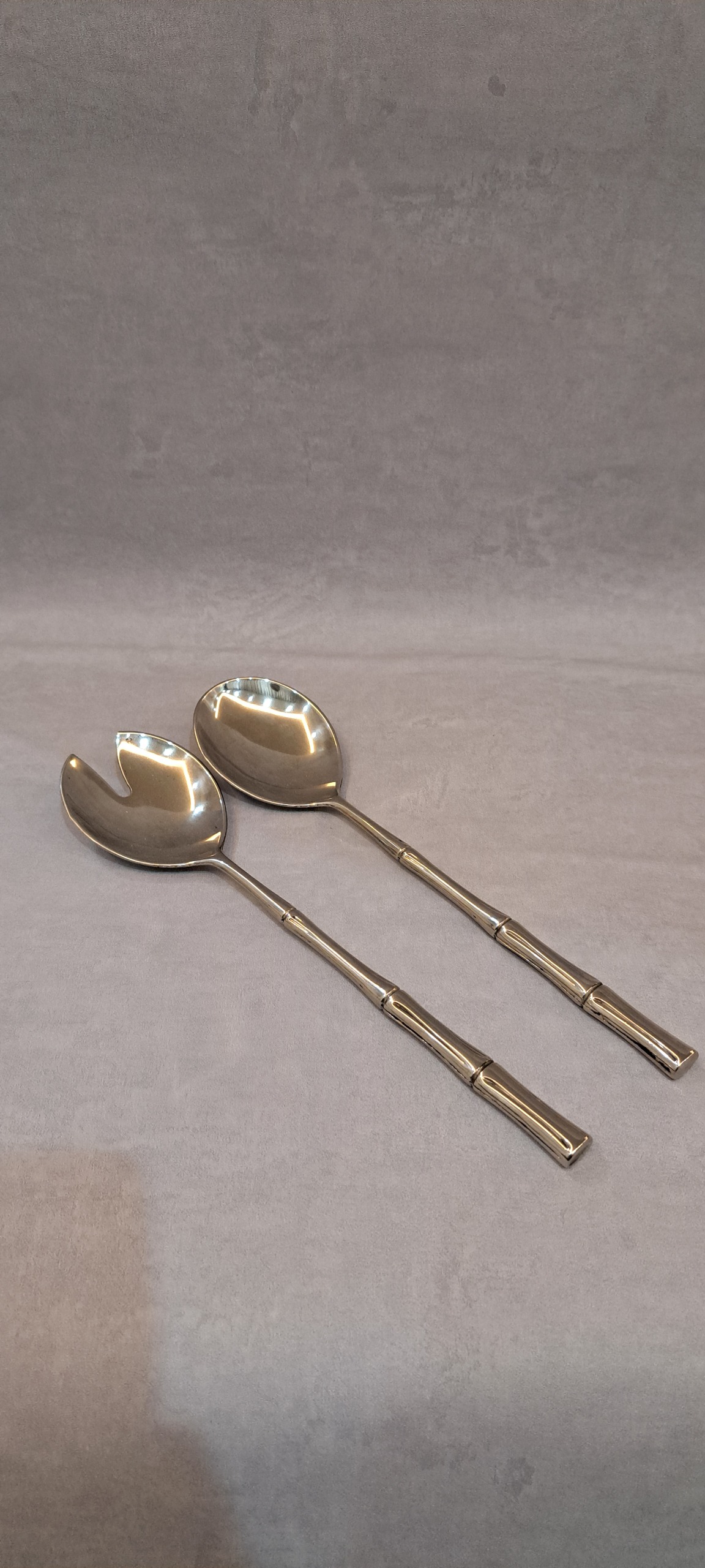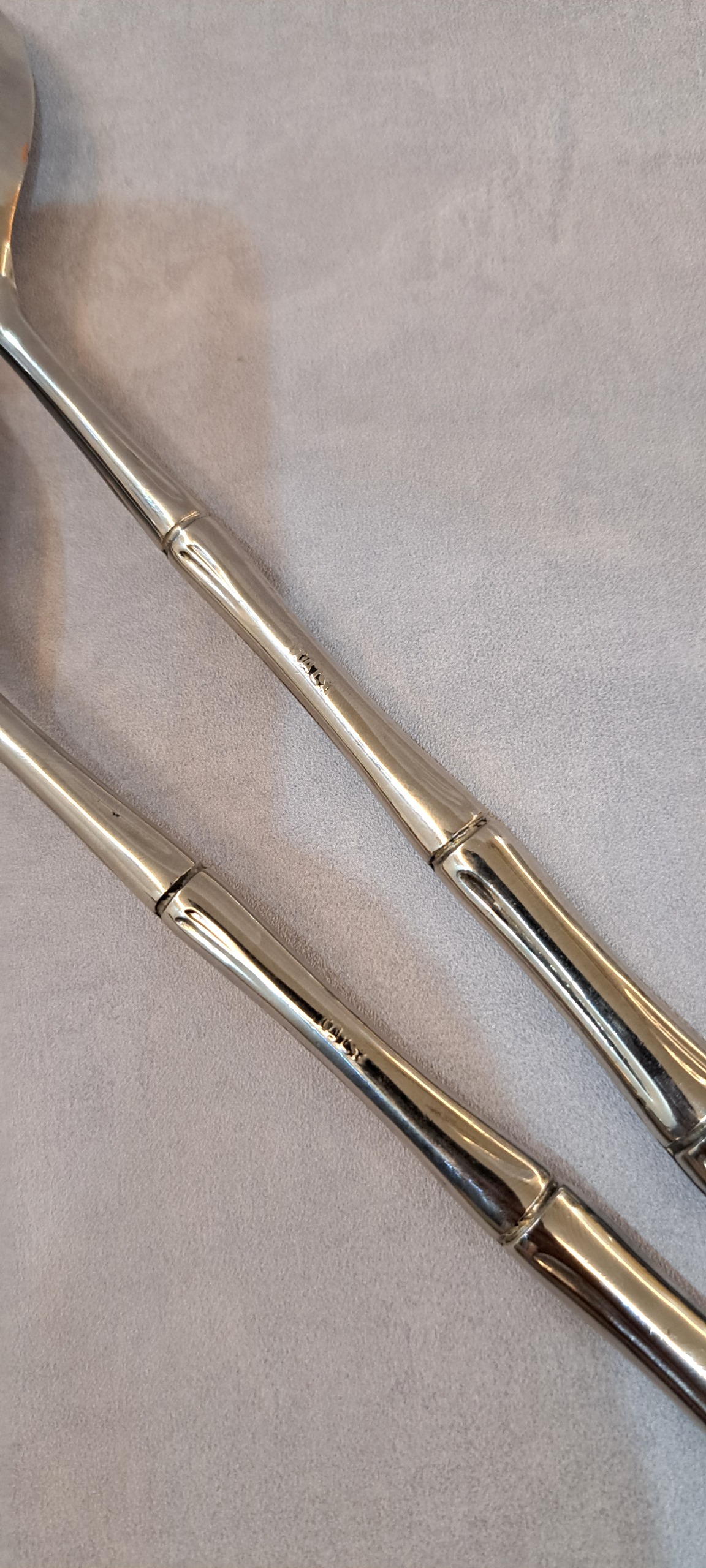 قاشق و چنگال سرو طرح بامبو دو تکه سیلورپلیت، ساخت ایتالیا، 11 و نیم اینچ