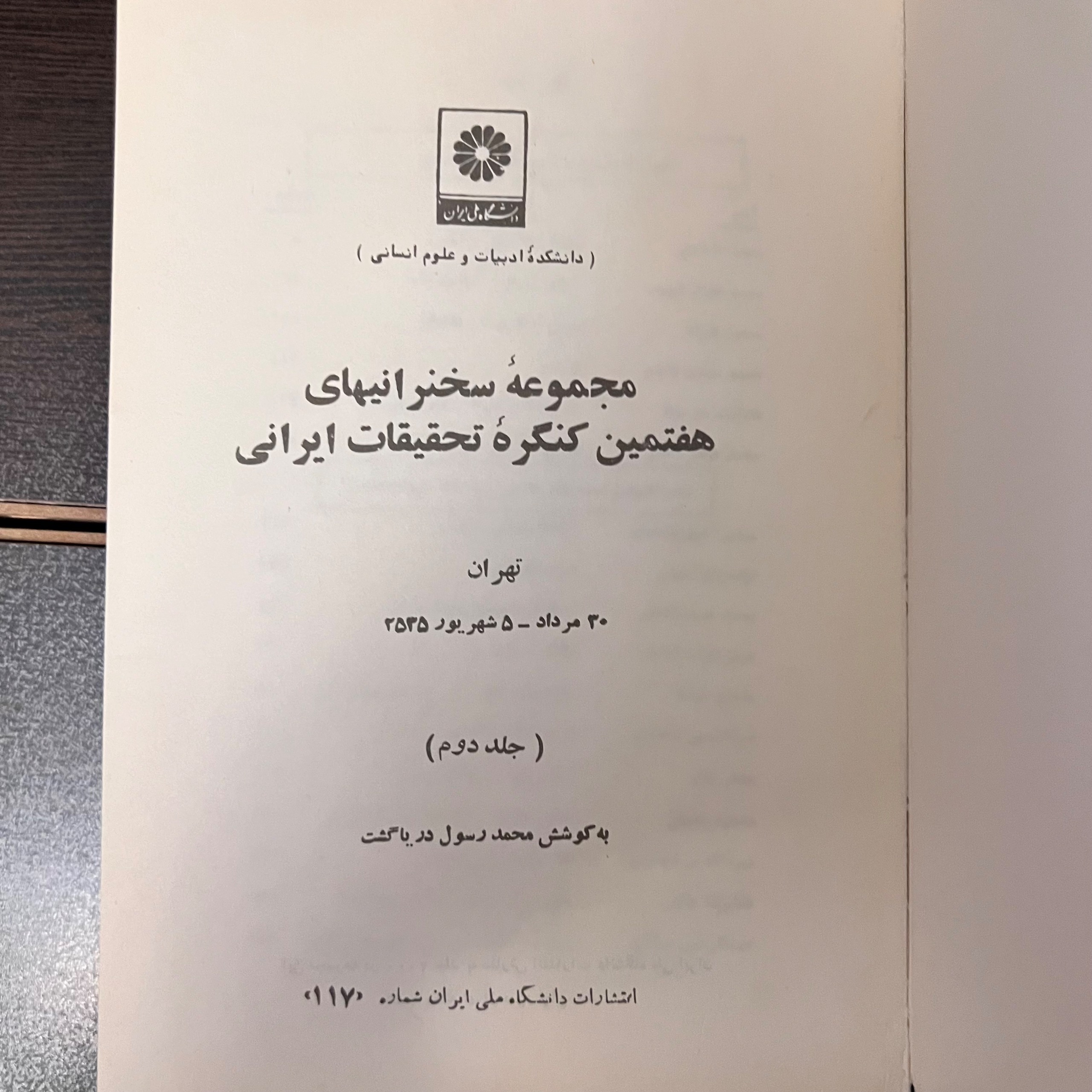 عنوان: مجموعه سخنرانیهای هفتمین کنگره تحقیقات ایرانی(جلد دوم)