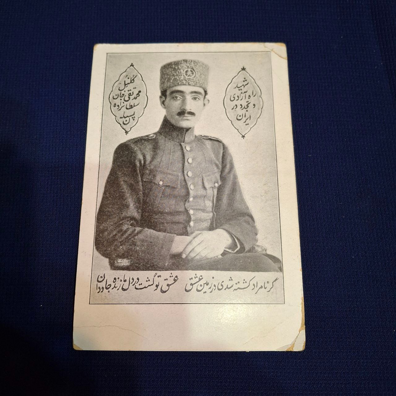 کارت پستال قاجاری تصویر کلنل محمدتقی خان پسیان