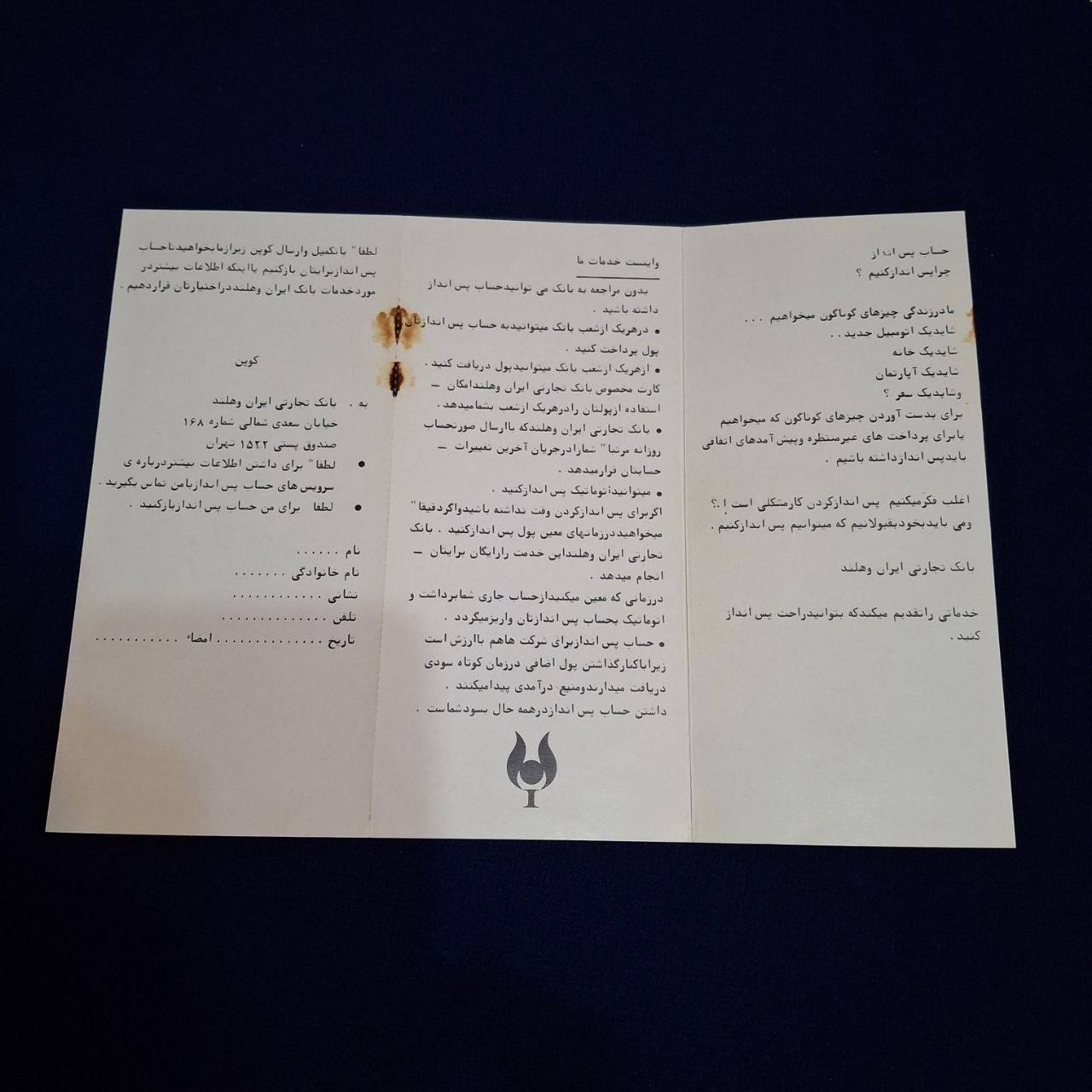بروشور قدیمی صندوق بانک تجارتی ایران و هلند نایاب