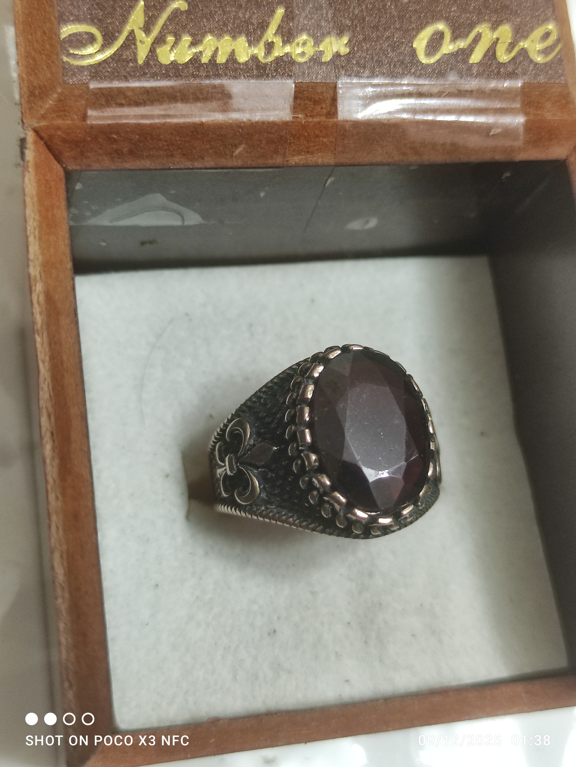 انگشتر با نگین اصل یاقوت سرخ که از خواص بسیار زیادی که دارد مشهور هست و بسیار سنگ مستحکمی است و از سختی +9برخورداره وغیره