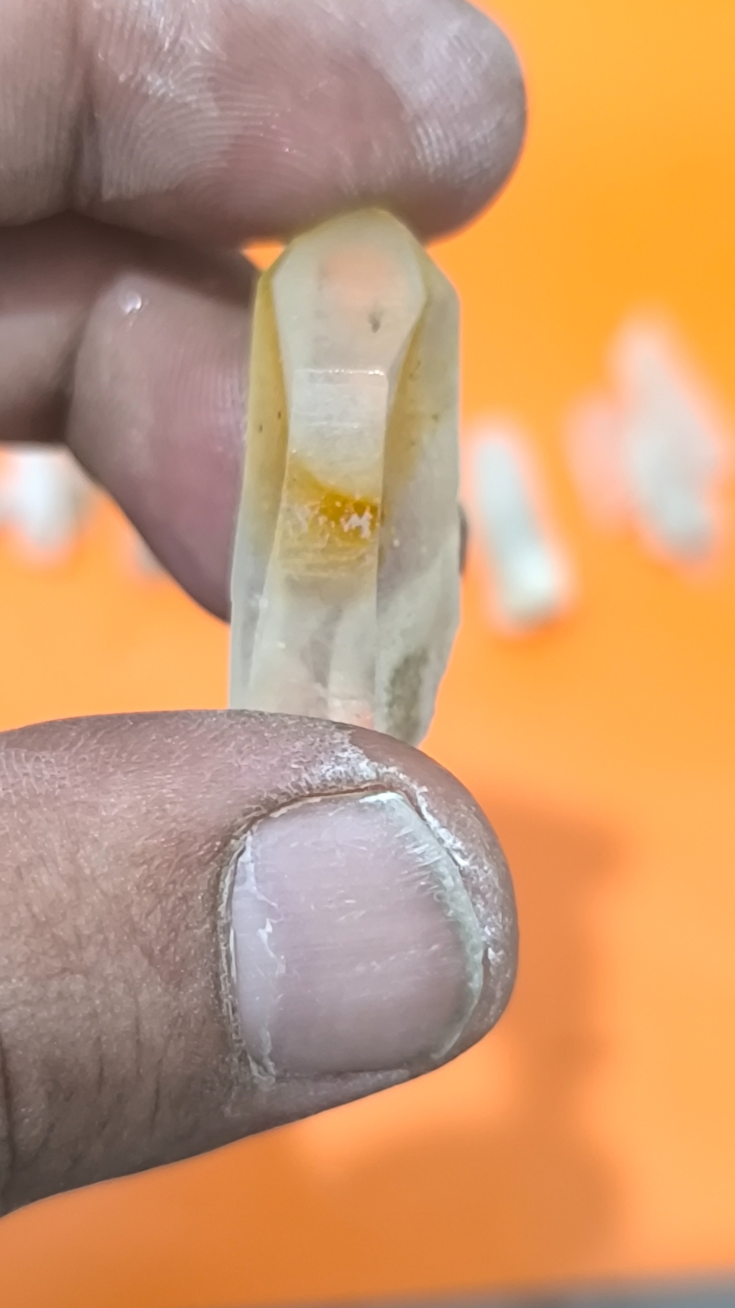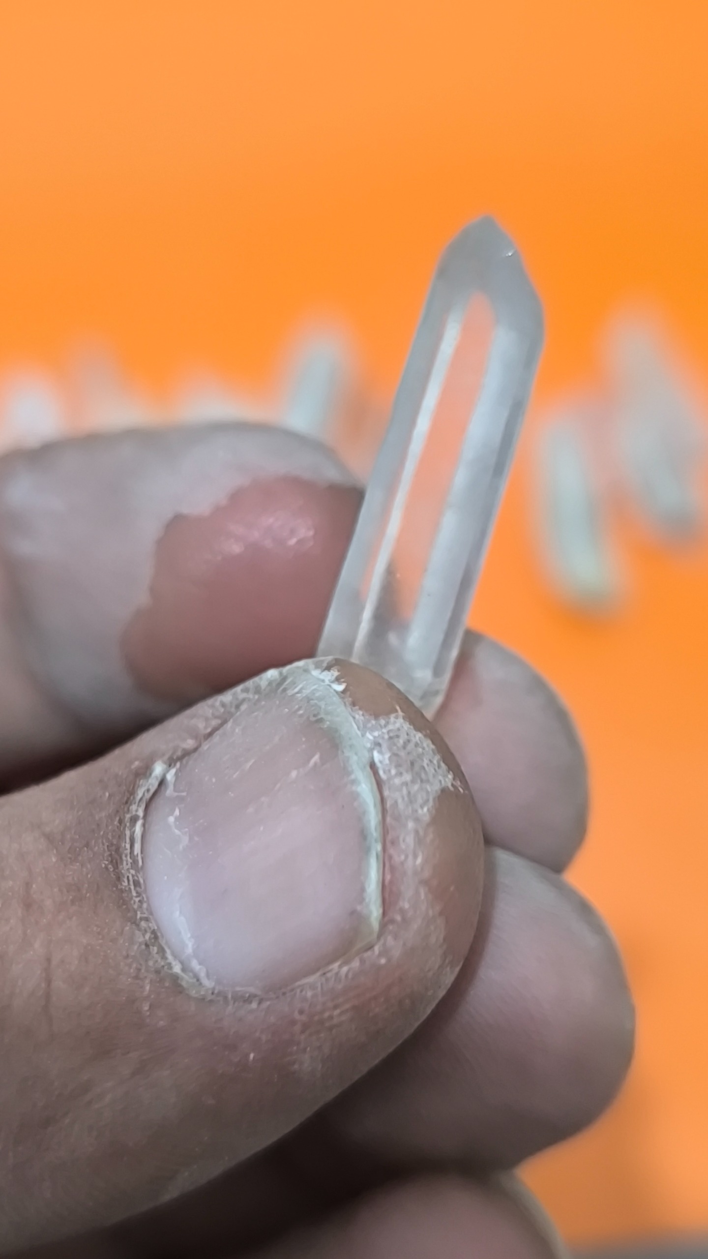 کریستال کوارتز منشوری درجه یک بدون پرتی یا سنگ اضافه که بهش چسبیده فقط یه سری پودر گچ مانند هست که بشورید میره کریستال کوارتز منشوری خواص درمانی زیادی داره