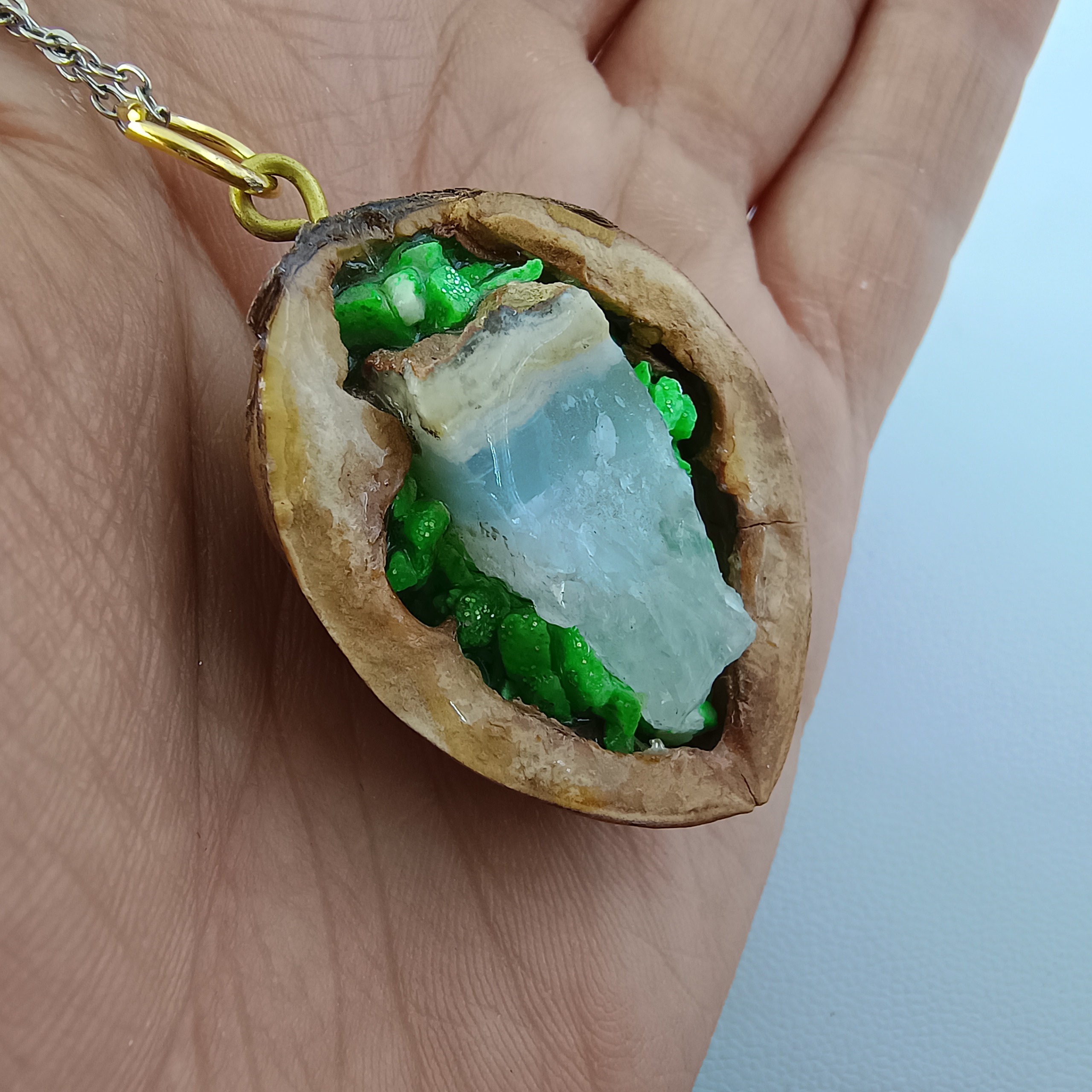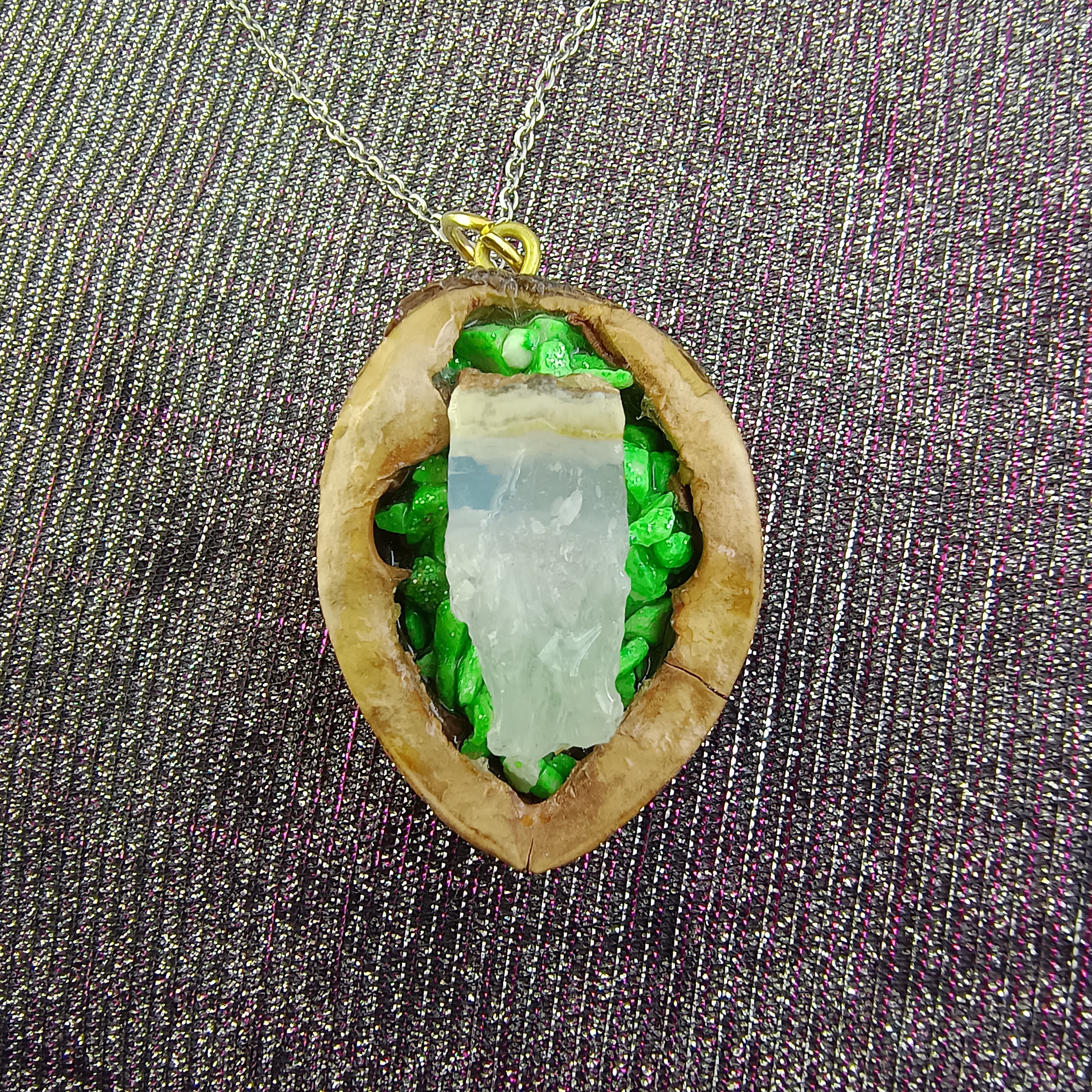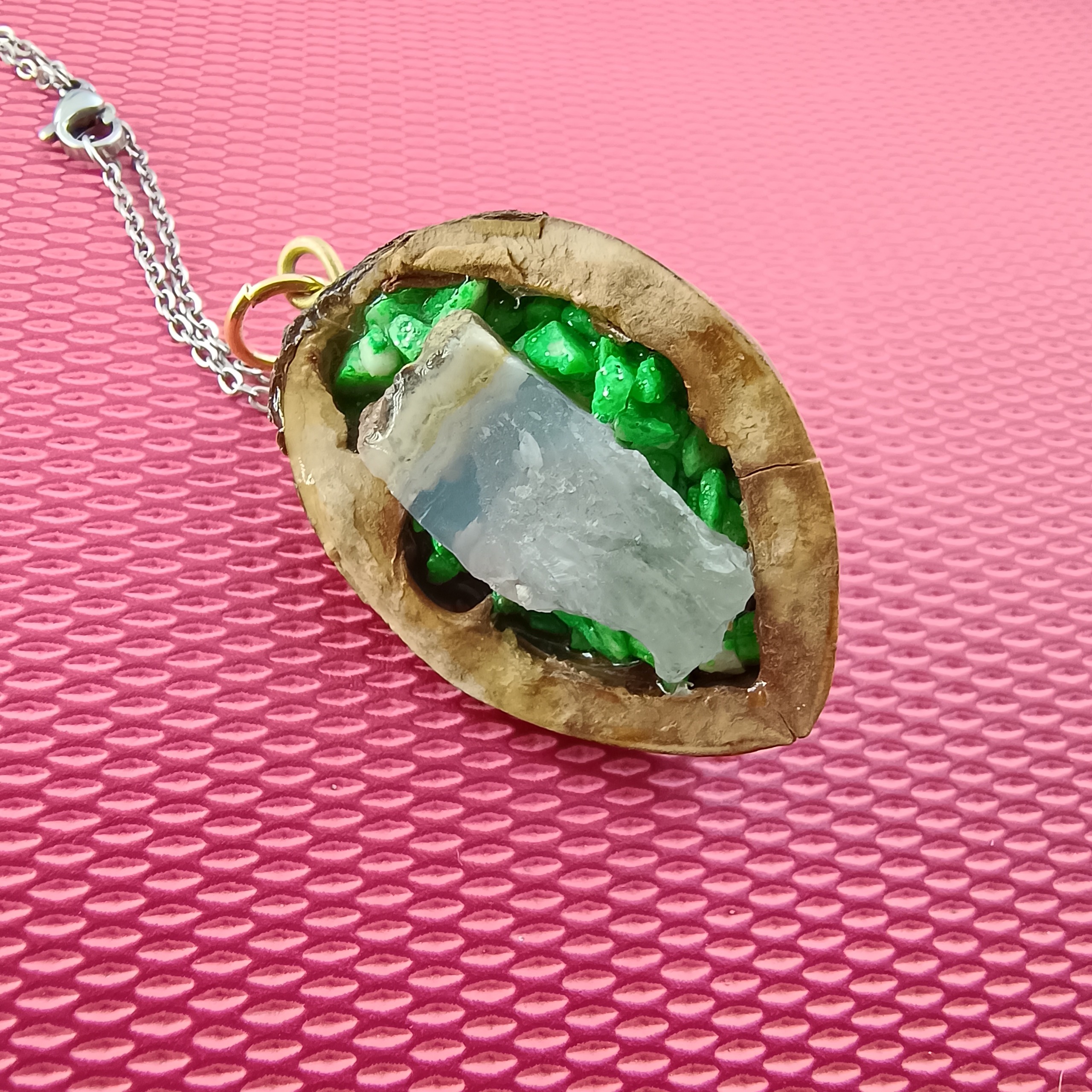گردنبند عقیق کوارتز قاب گردو 1و560