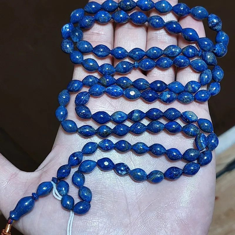 یک عدد تسبیح لاجورد اصل افغانستان،معدن بدخشان،گاو دنبال،قواره بسیار بزرگ 55 سانتی،کارسوپر کلکسیونی،تمام تراش دست و بی نظیر،قیمت مغازه کمتر از 5_6 نیست