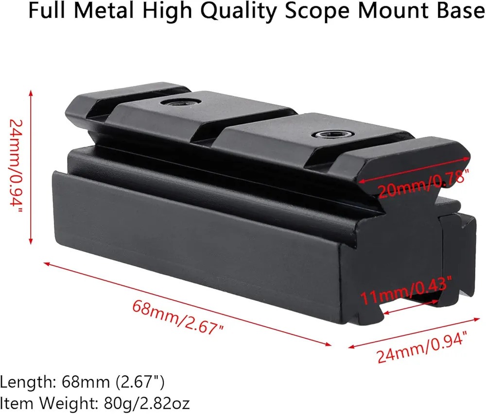 تبدیل ریل پیکاتینی 11 به 22 میلی متری و 11 به 11 میلی متری جهت نصب انواع تجهیزات جانبی سلاح مانند رددات، لیزر، چراغ قوه با امکان نصب هم زمان 3 تجهیز.