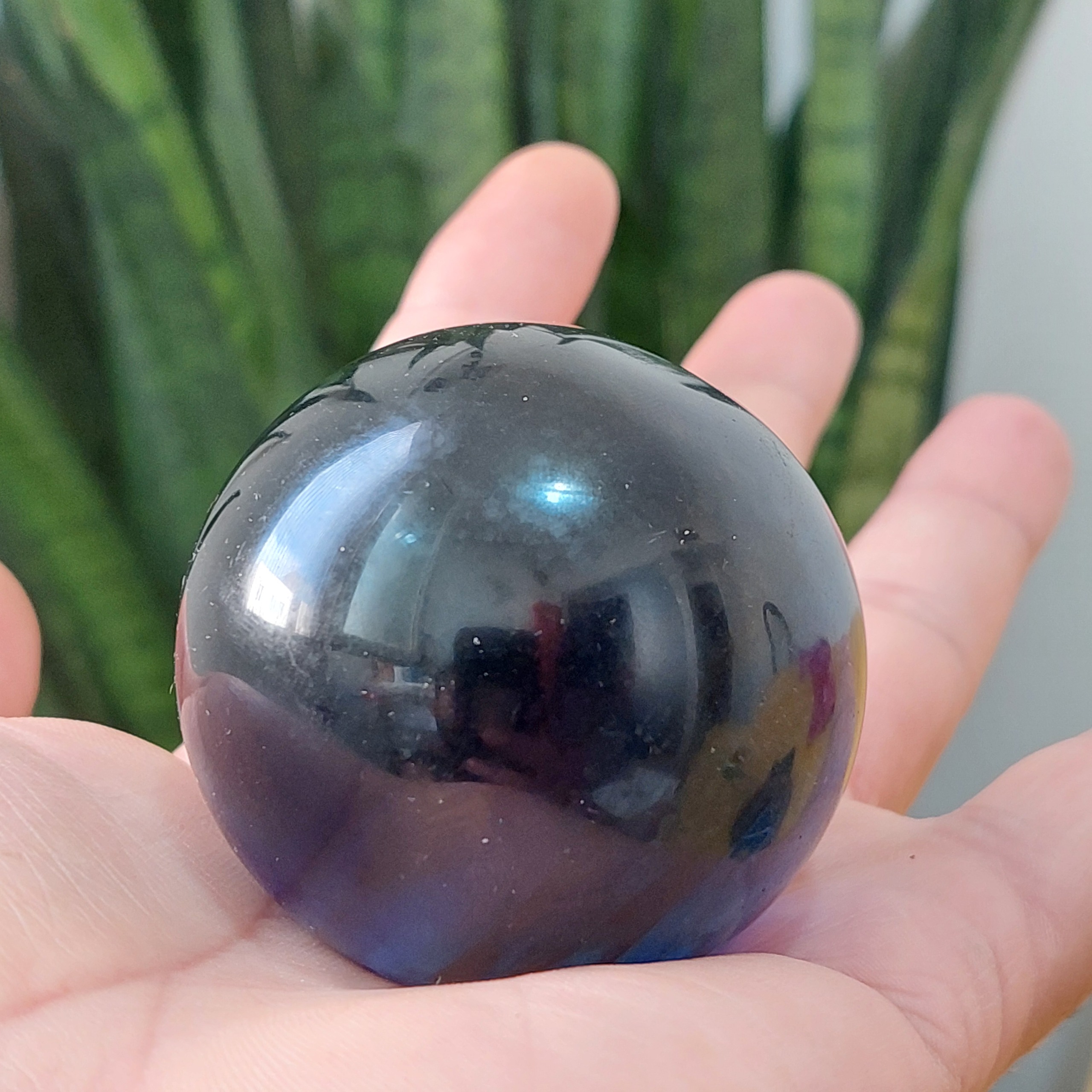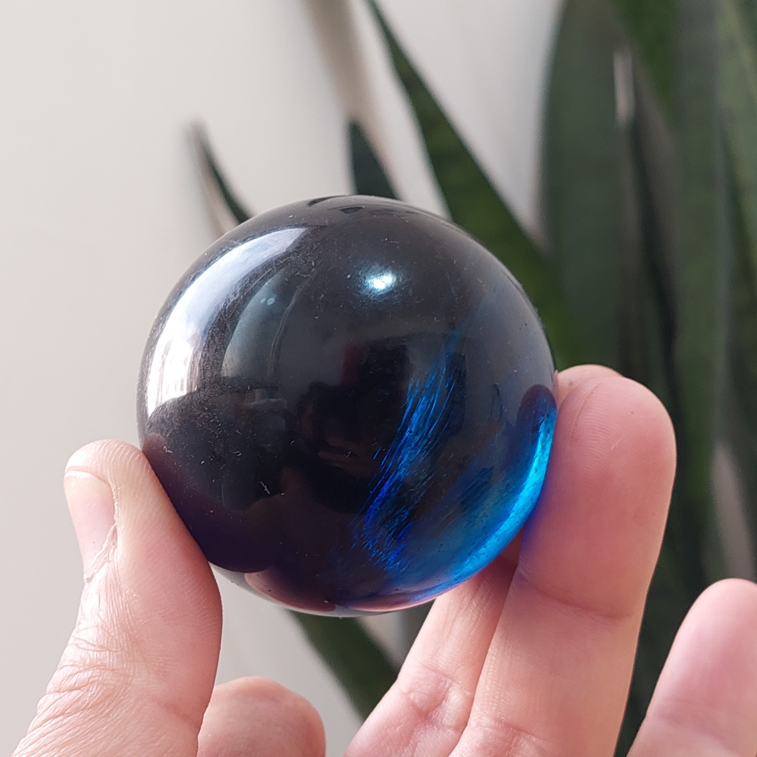گوی درشت 55میلیمتری سنگ آبسیدین آبی تراش دست فوق العاده خاص و زیبا