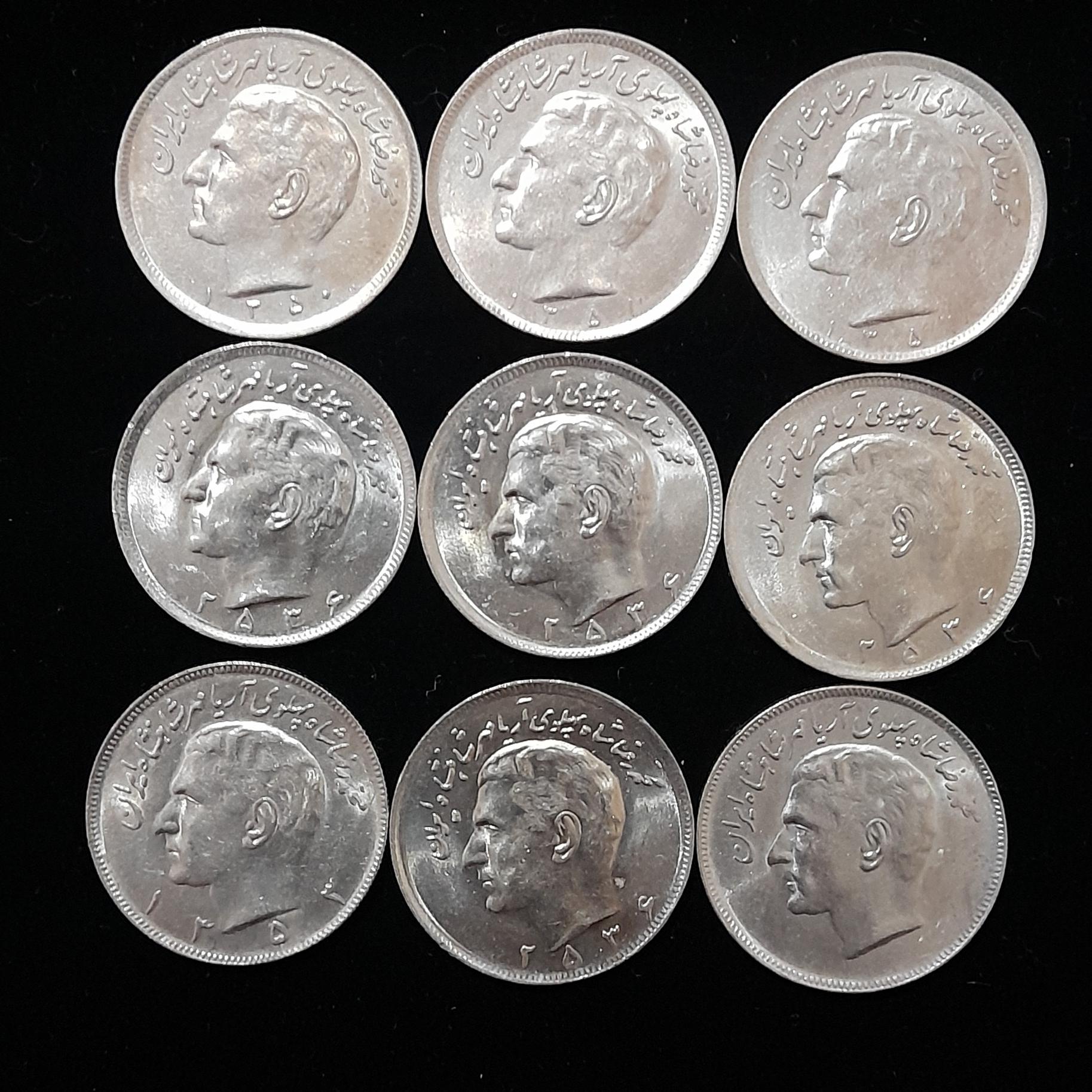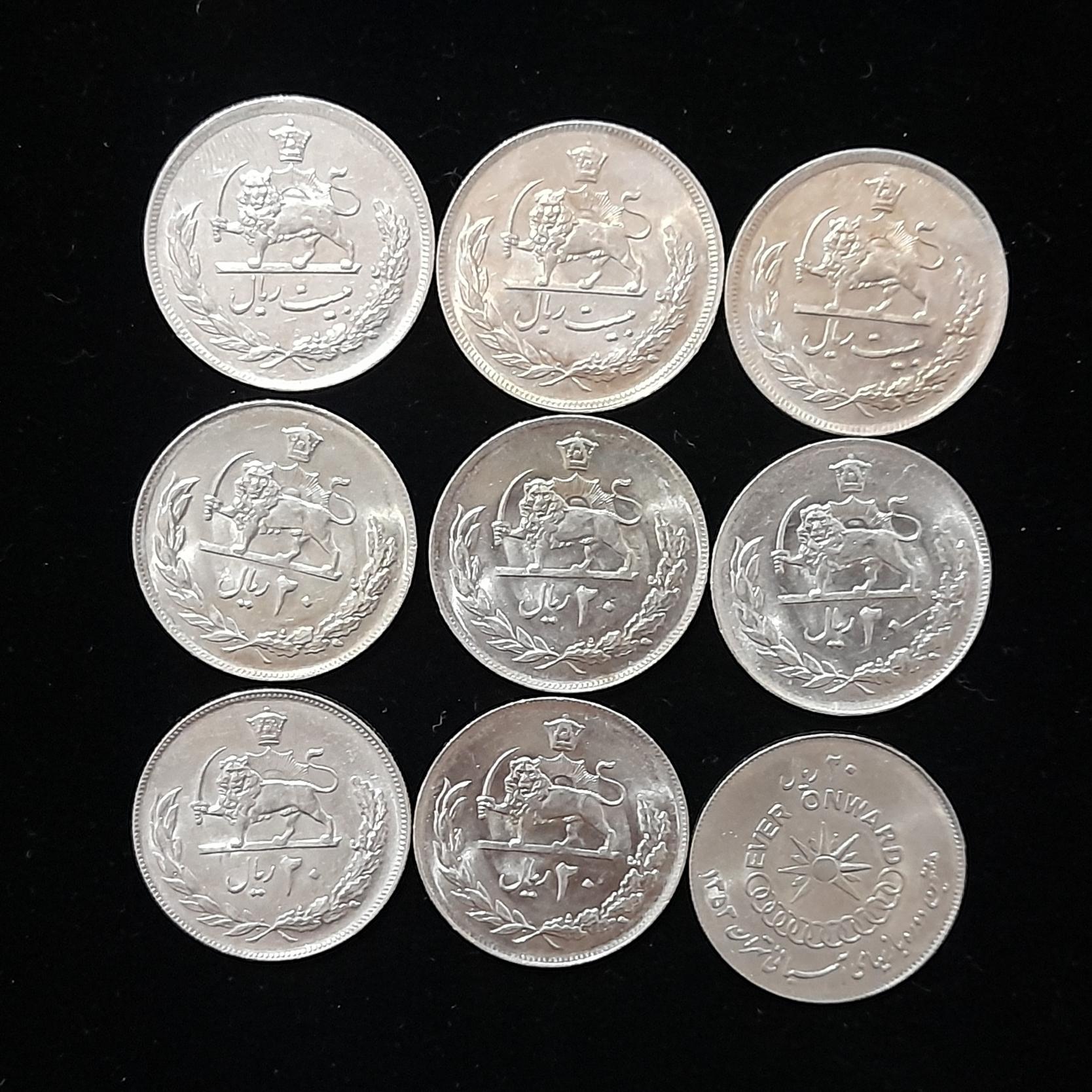 مجموعه 9 عدد سکه 20 ریال های دوره پهلوی دوم
