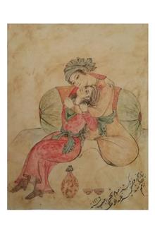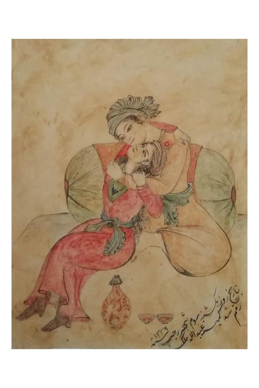 نقاشی مینیاتور دلدادگان عاشق پهلوی کلکسیونی