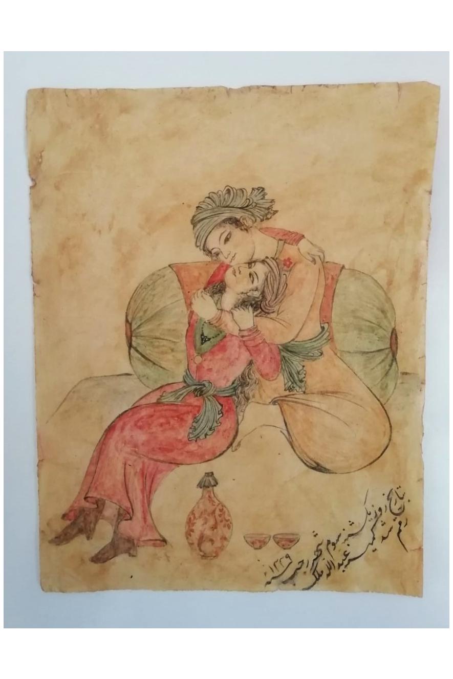 بسیار ارزشمند زیبا و عاشقانه کمیاب، قسمت روی کاغذ براق است احتمالا آهار شده باشد