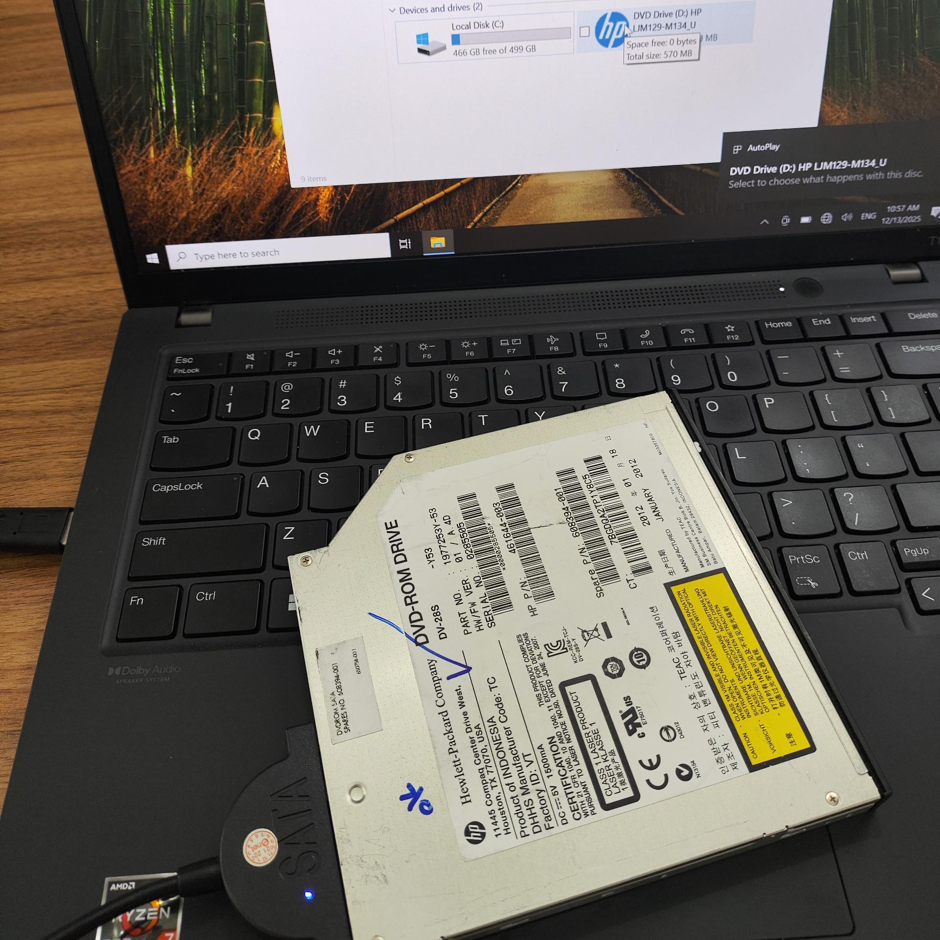 دی وی دی رام باکیفیت اینترنال HP با کابل تبدیل که اکسترنال شده