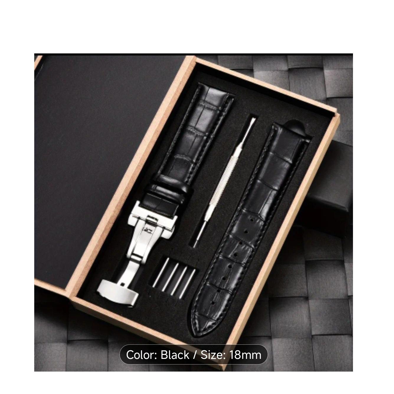 بند ساعت چرم مصنوعی اورجینال با 4 پیم و ابزار تعویض بند