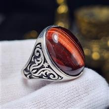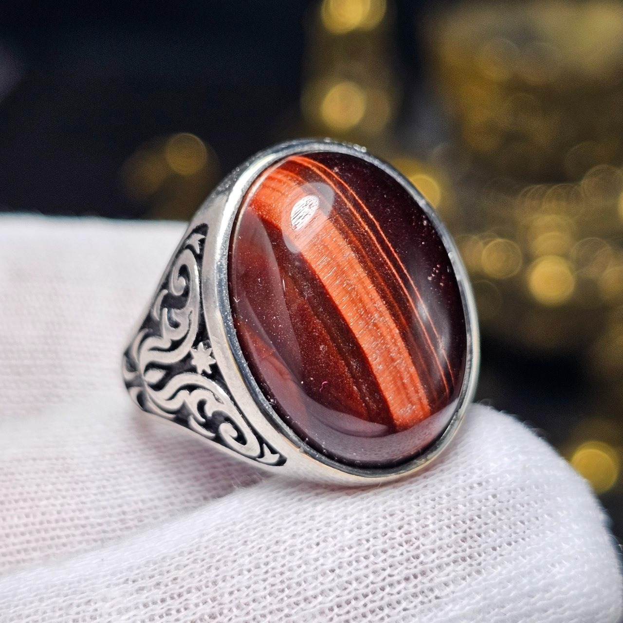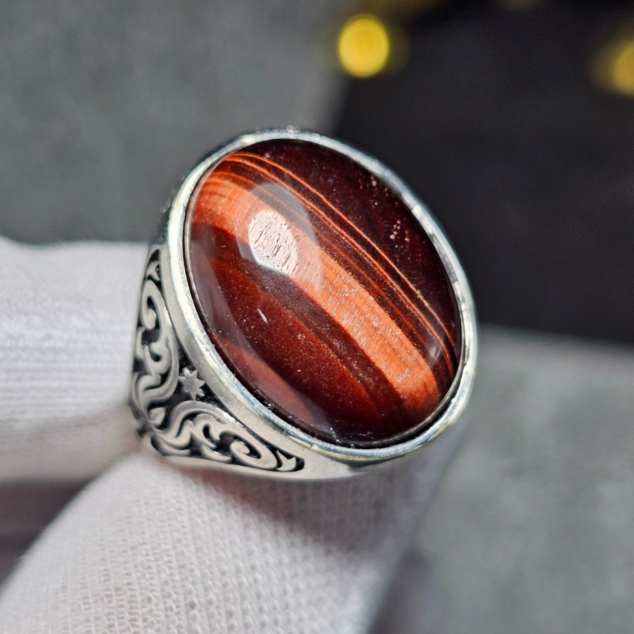 انگشتر نقره روس با سنگ طبیعی چشم شاهین معدنی کد 37032