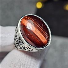 انگشتر نقره روس سنگ طبیعی چشم شاهین معدنی کد 37032