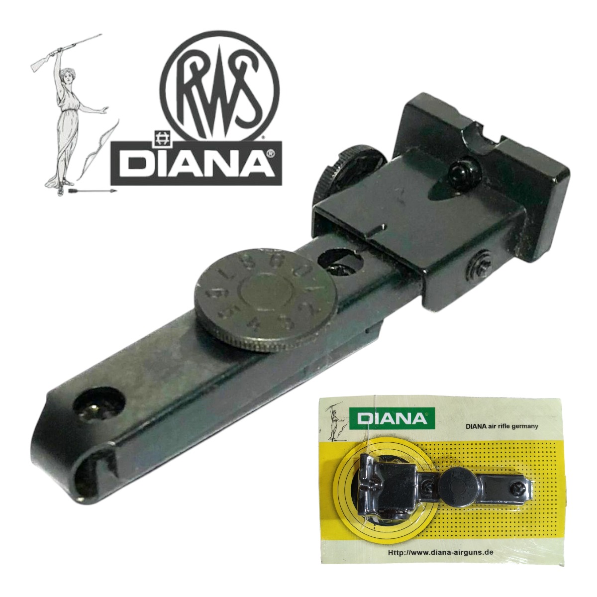 شکاف درجه دیانا با روزنه دید چهار حالته مناسب برای مدل های 24، 31، 34، 35، 36، 45، 52، 54، 68، 340 و 350 تفنگ های بادی دیانا.