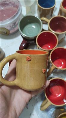 لیوان سفالی لعابدار در رنگهای مختلف ( سبز،آبی تیره،زرد،قرمز،صورتی،..) به صورت تک و عمده.