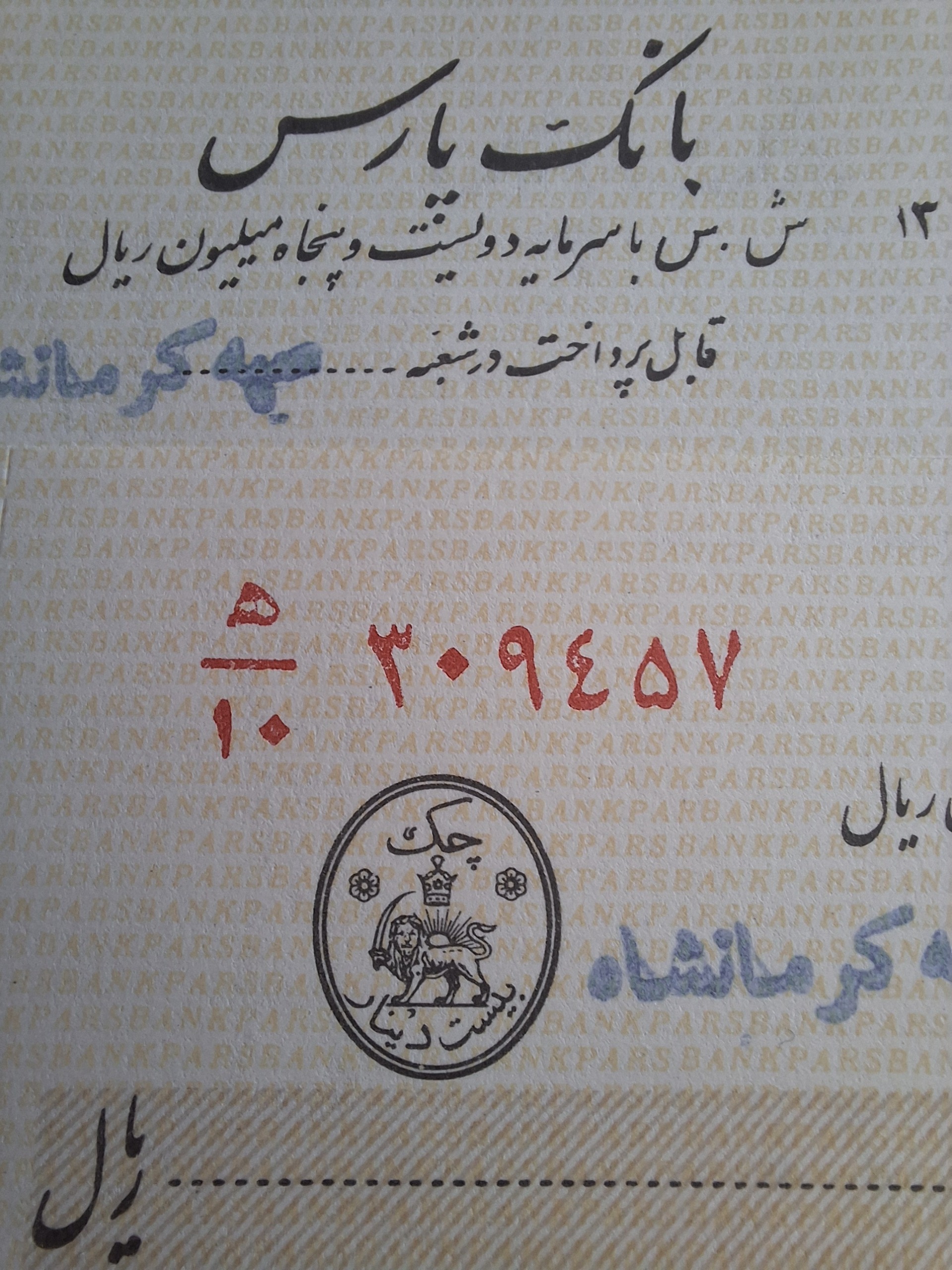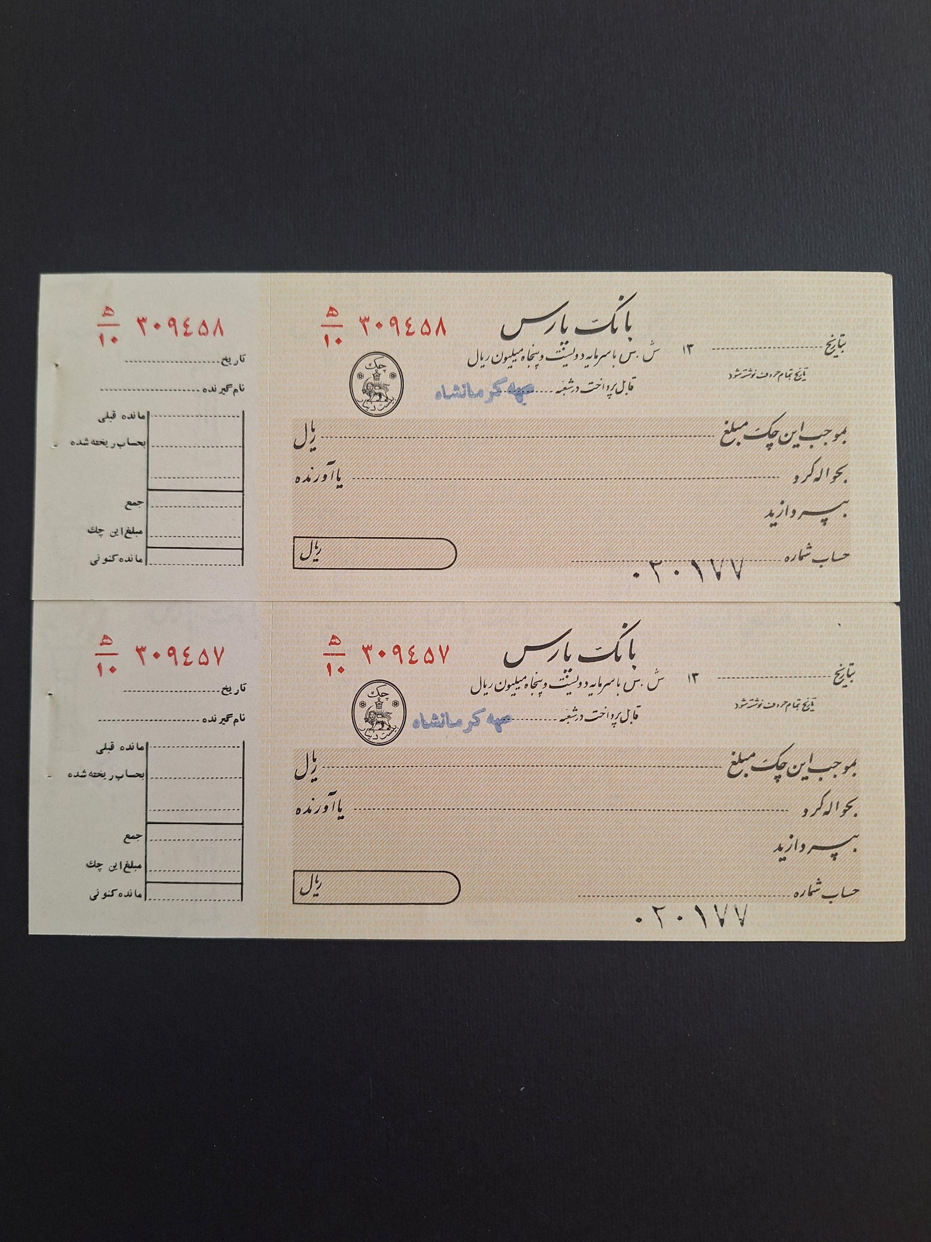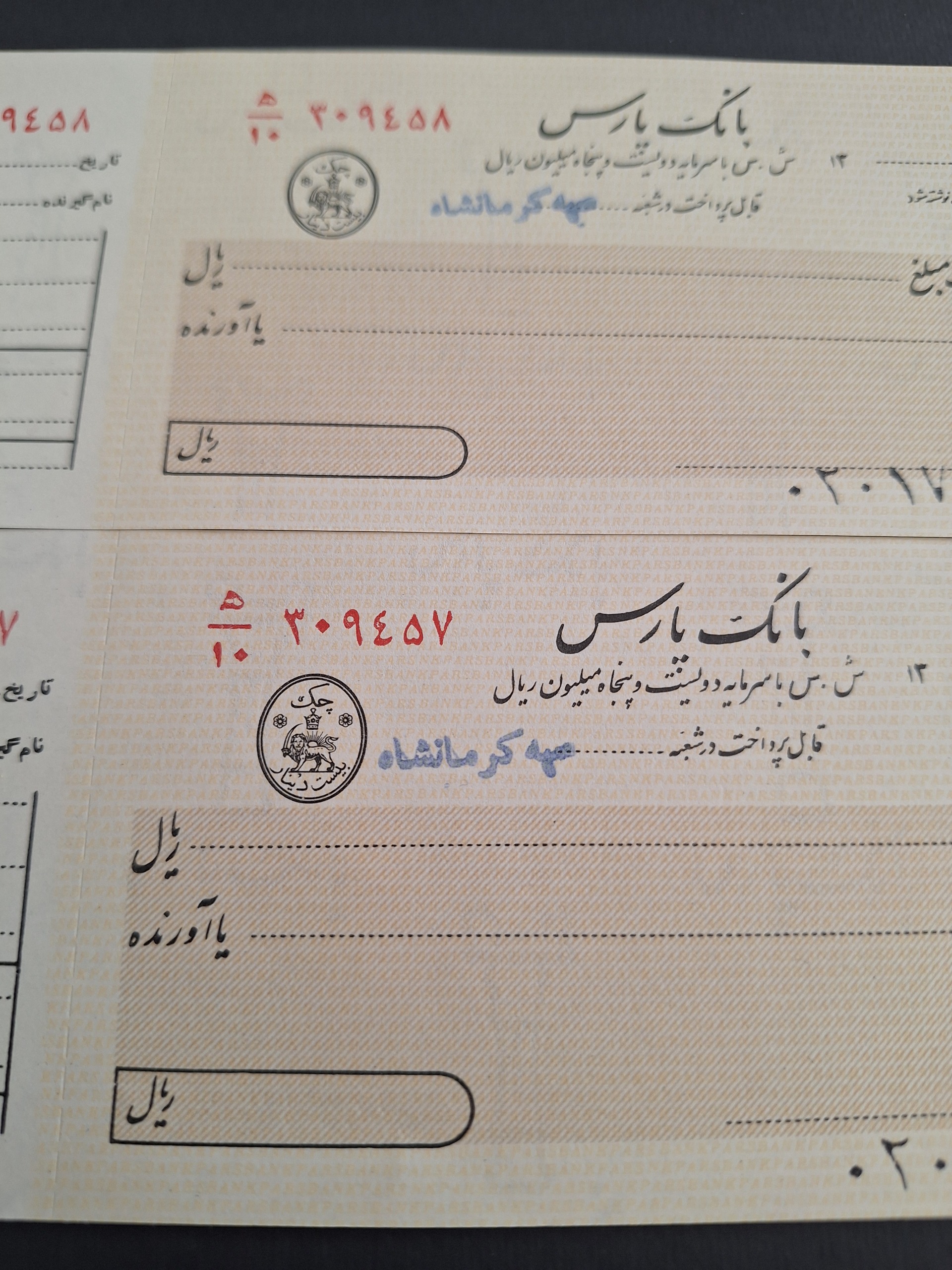 چک بانک پارس سایز کوچک 20 دیناری کمیاب