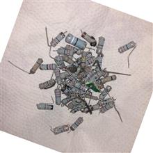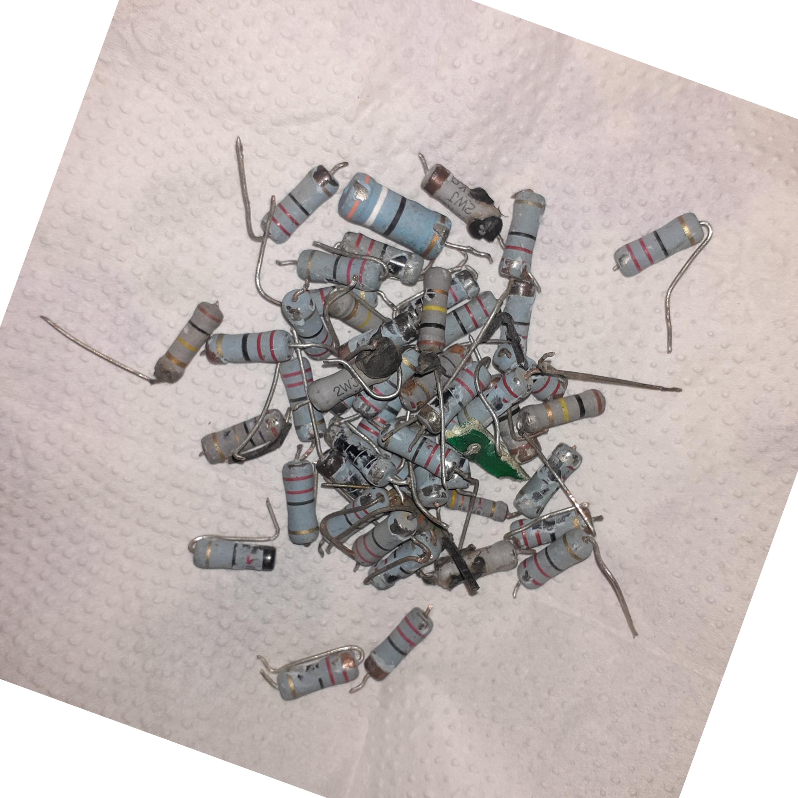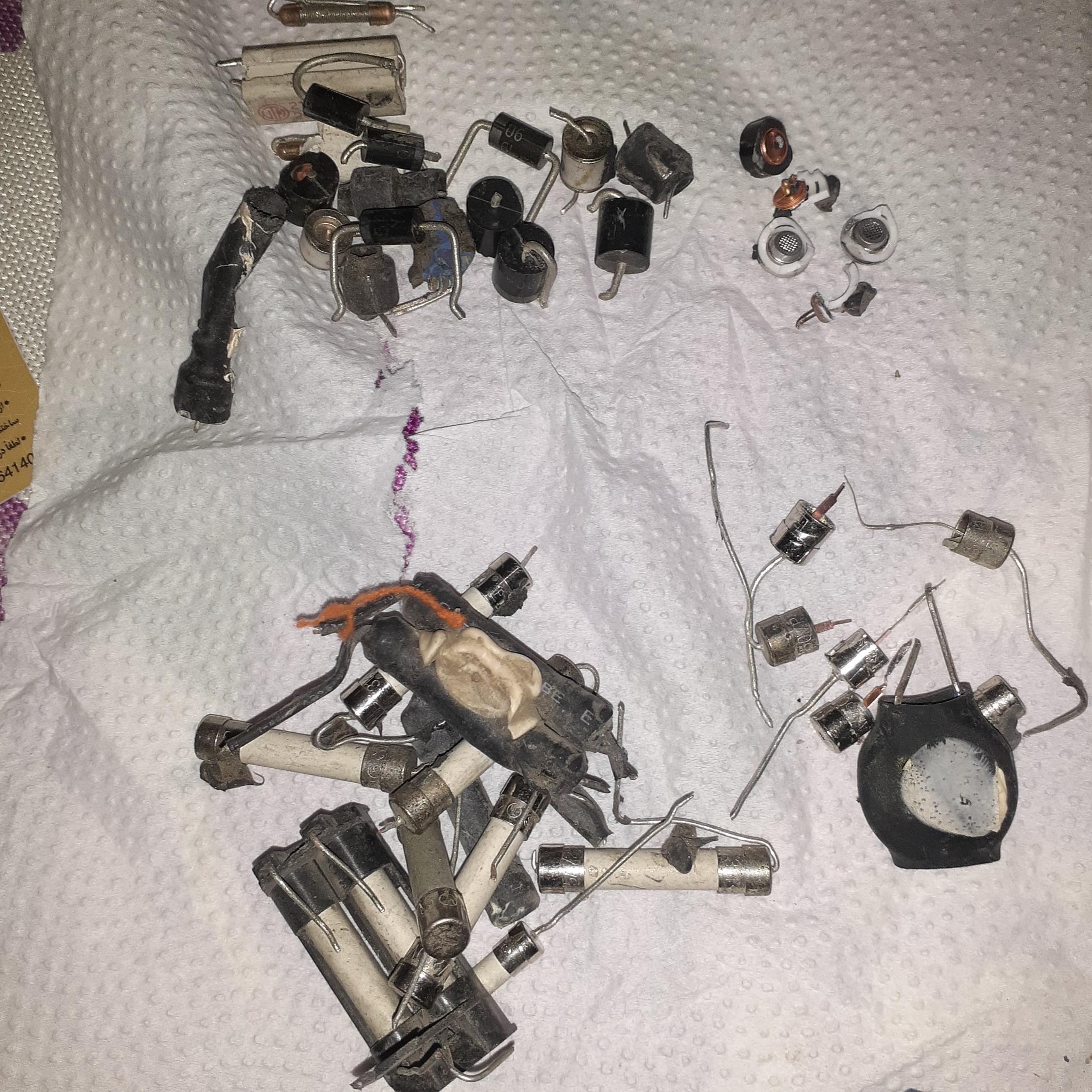 دوستان عکس ها رو که دیدید کل بار از این چند قلم هستش نصبت هاشون هم درسته من 400 گرم همینجوری برداشتم تفکیک کردم که توی عکس مشخص باشه و برای خرید راحتتر باشید این بار رو به صورت در هم کیلویی 4.5 میلیون تومن میدم خدمتتون ،ببینید انواع ایسی ریز و خرچنگی موبایلی و اینا در هم توی 400 گرم80 گرم بود  ،150 گرم هم ترانزیستور قدیمی  بود این مقاومت آبی طوسی ها 70 گرم بود ،100گرم هم خازن و و گچی و اینا که توی تصویر میبینید