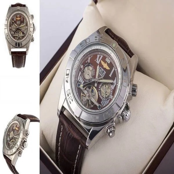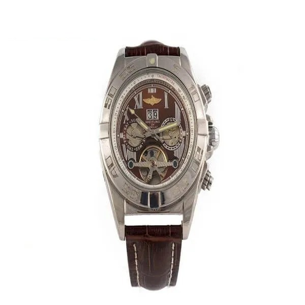 ساعت مچی برایتلینگ BREITLING AB01 سه موتوره تقویم دار  با طراحی بسیار زیبا خواهان زیادی به خود جلب کرده است و این ساعت مچی دارای فرم هندسی بصورت دایره می باشد و با شماره های لاتینی که در این ساعت مچی به کار رفته است زمان دقیق را برای شما نشان می دهد. ساعت مچی برایتلینگ دارای بند اصل چرم و موتور آن ساخت ژاپن است.
