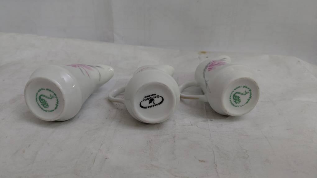 تعداد 3 عدد سس خوری چینی قدیمی ساخت کارخانه طوس.7 سانتی با نقش دو مدل گل میخک.