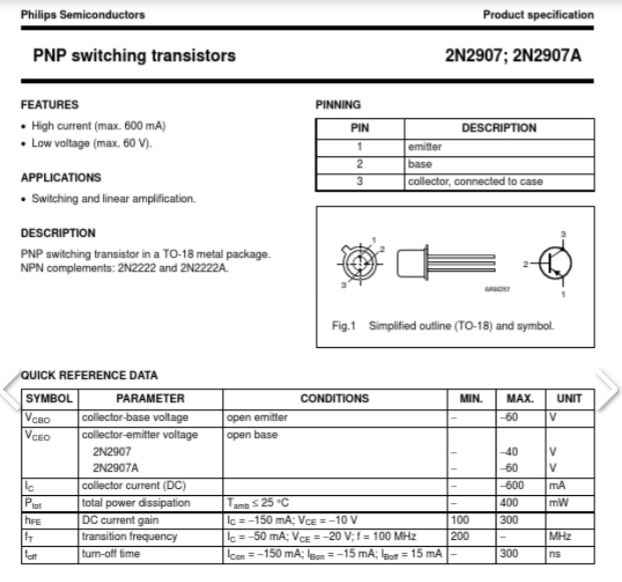 ترانزیستور 400mW/600mA/hfe300 2N2907 اوریجینال