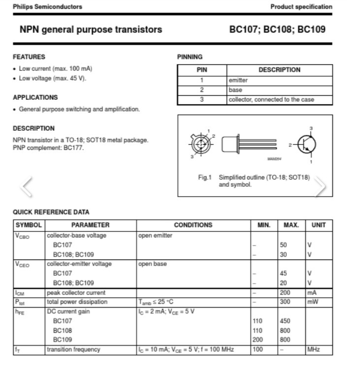 ترانزیستور BC107 اوریجینال فیلیپس