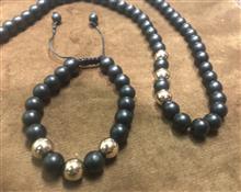 گردنبند سنگ اونیکس مشکی و حدید دستبند