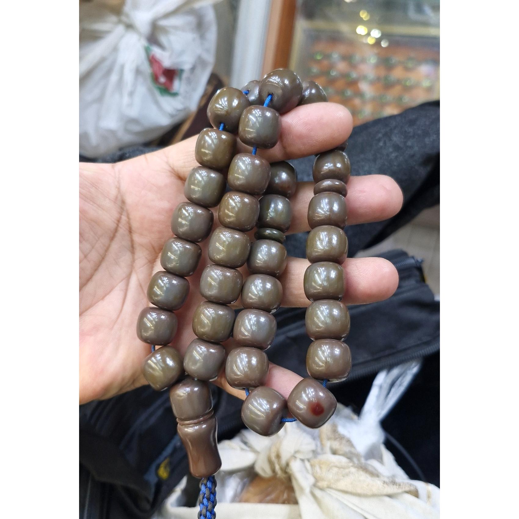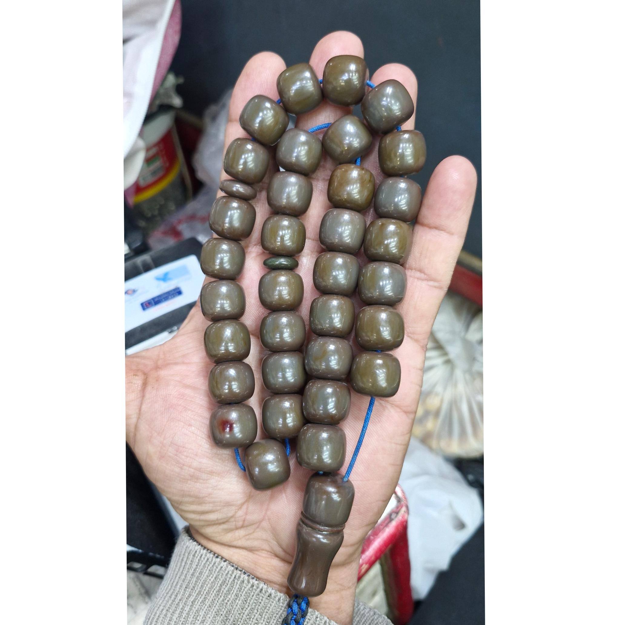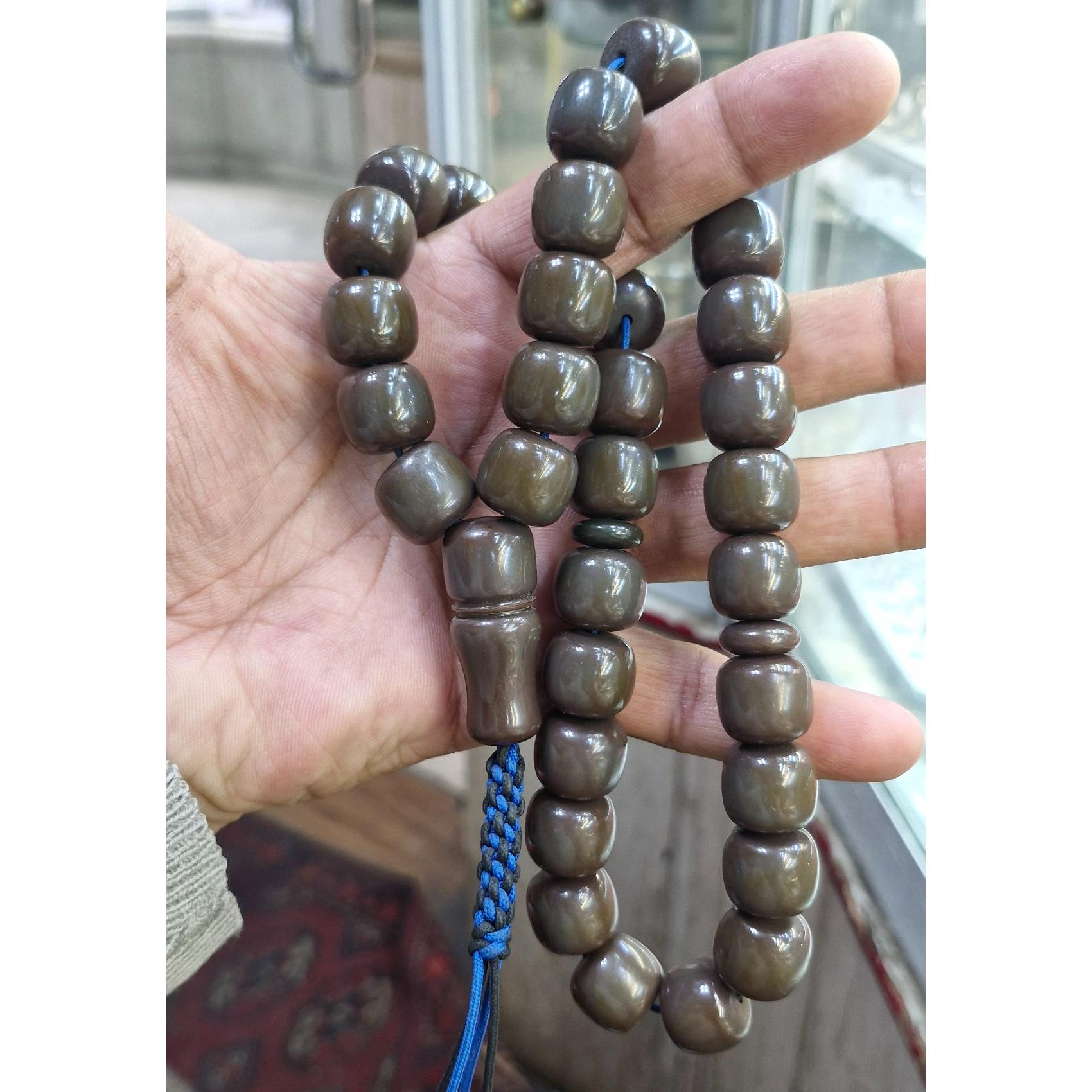 تسبیح سندلوس سی و سه دانه شمش آلمان تراش دست وزن 108 گرم طول30 سانت زیبا و خوش دست  تراش حبه ای