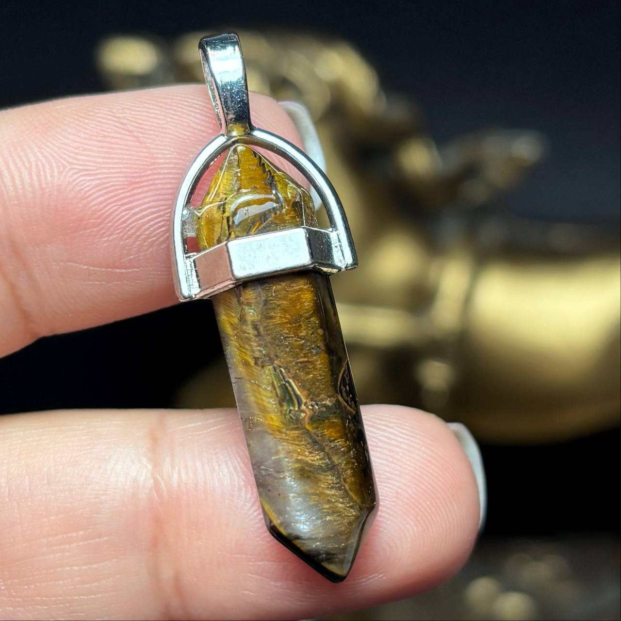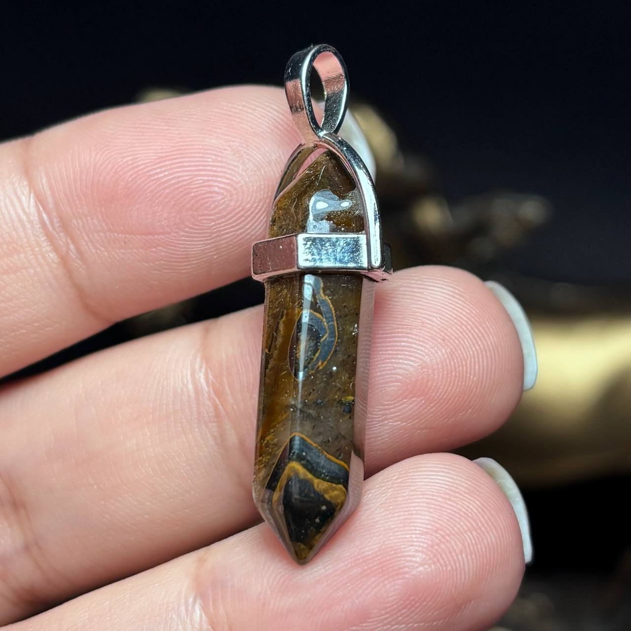 آویز گردنبند سنگ طبیعی چشم ببر معدنی کد k1204