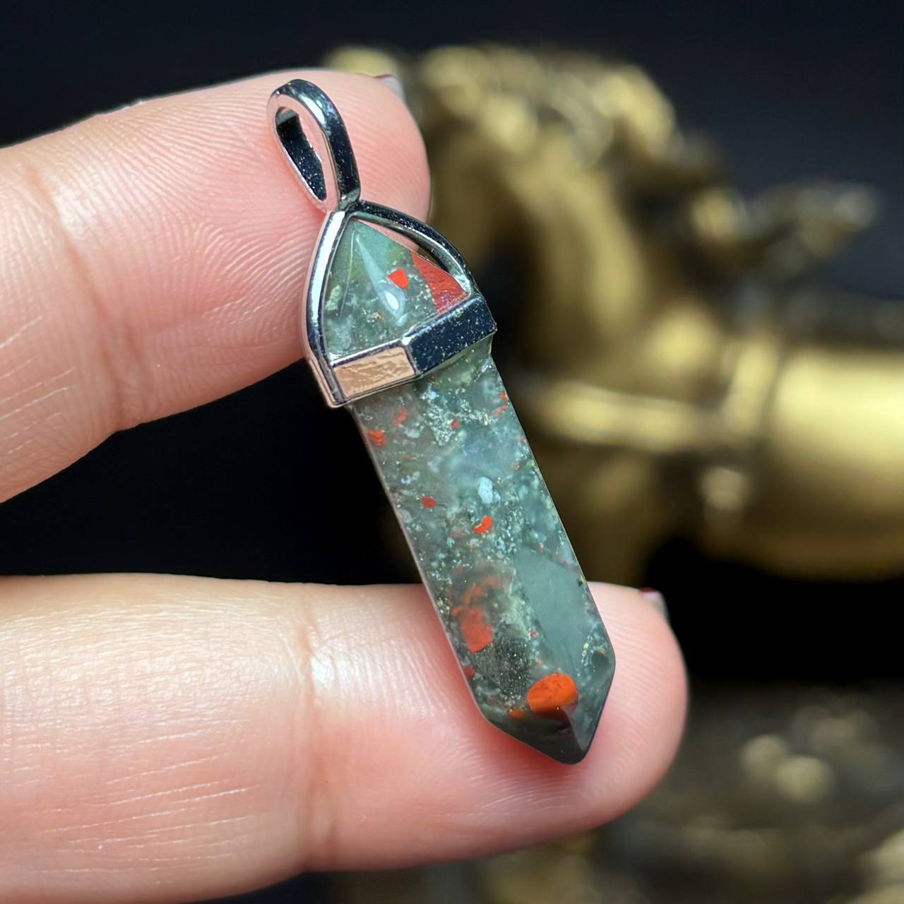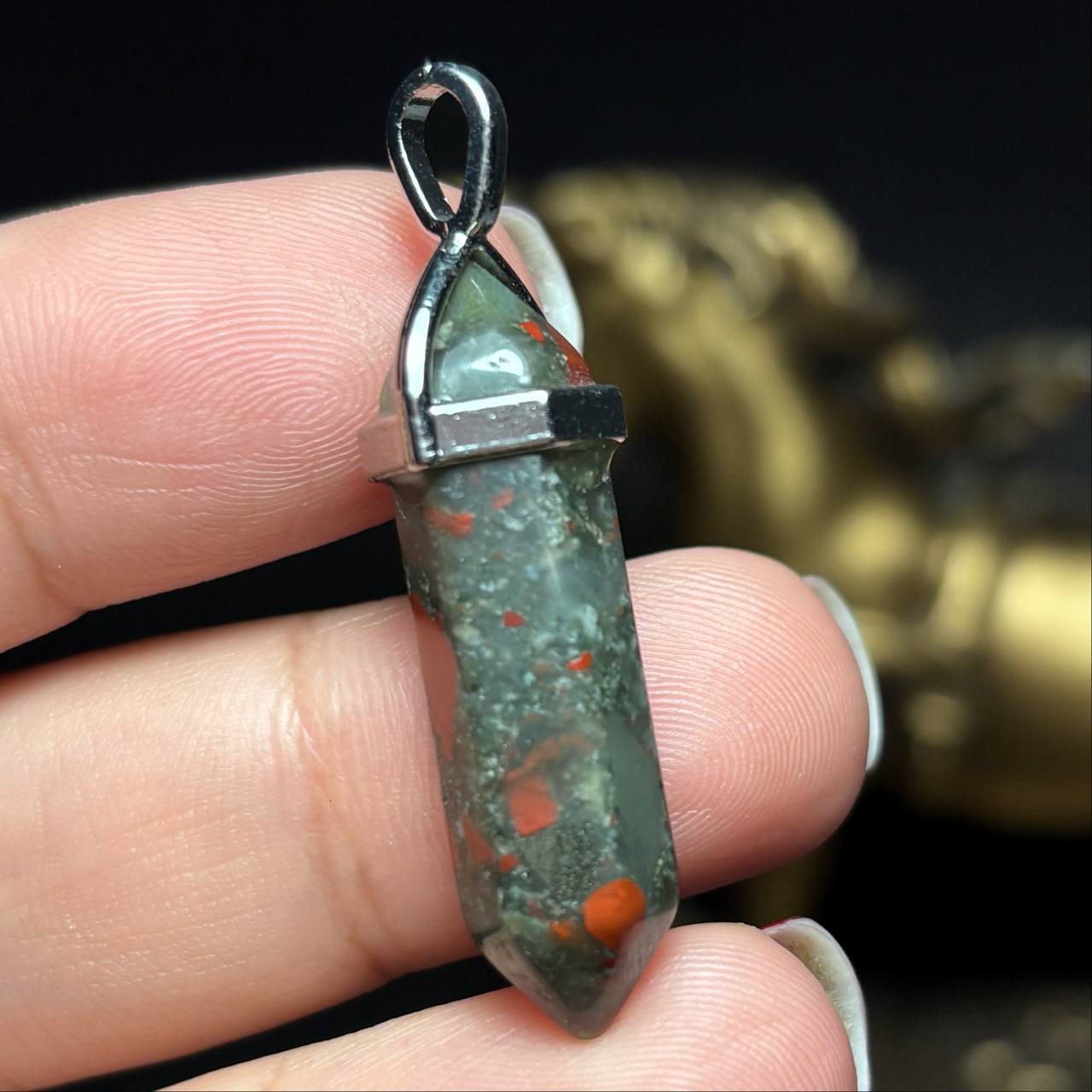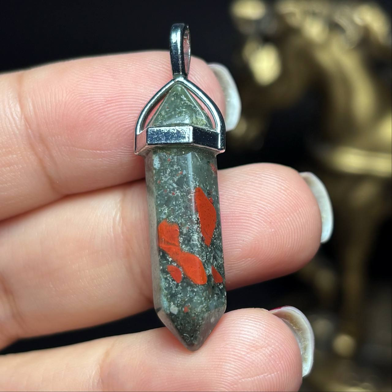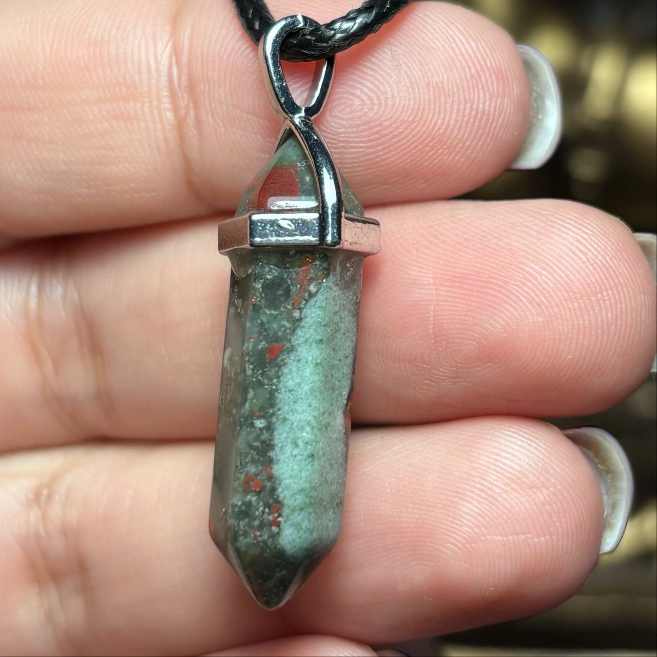 آویز گردنبند سنگ طبیعی سنگ خون معدنی کد k1205