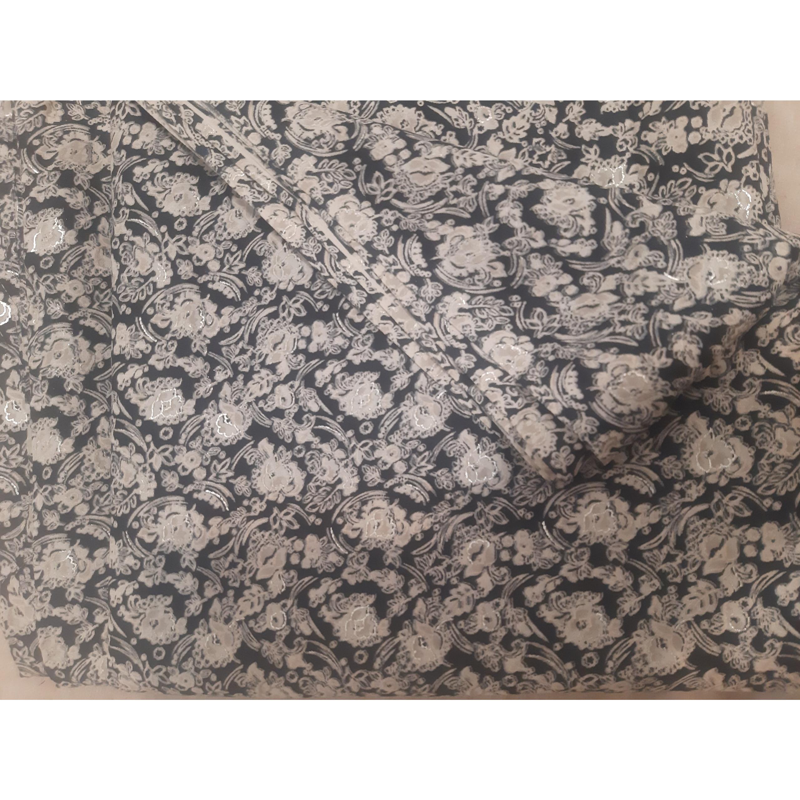 طول پارچه 4/5متر وعرض آن 1/10 می باشد .جنس مرغوب و روی گلها رگه.های نقرهای رنگ وجود دارد که باعث افزایش زیبایی ومجلسی بودن آن میشود .مناسب پیراهن ، بلوز وسایر مصارف نیز میباشد ،