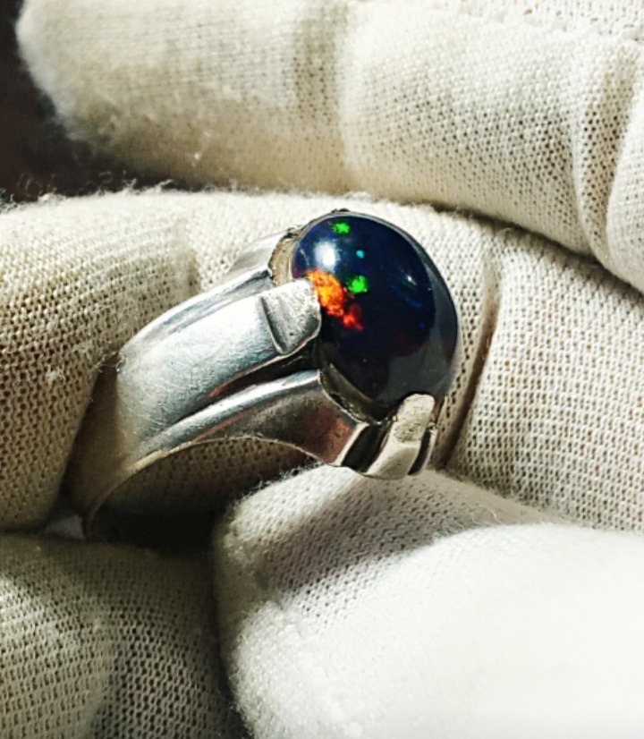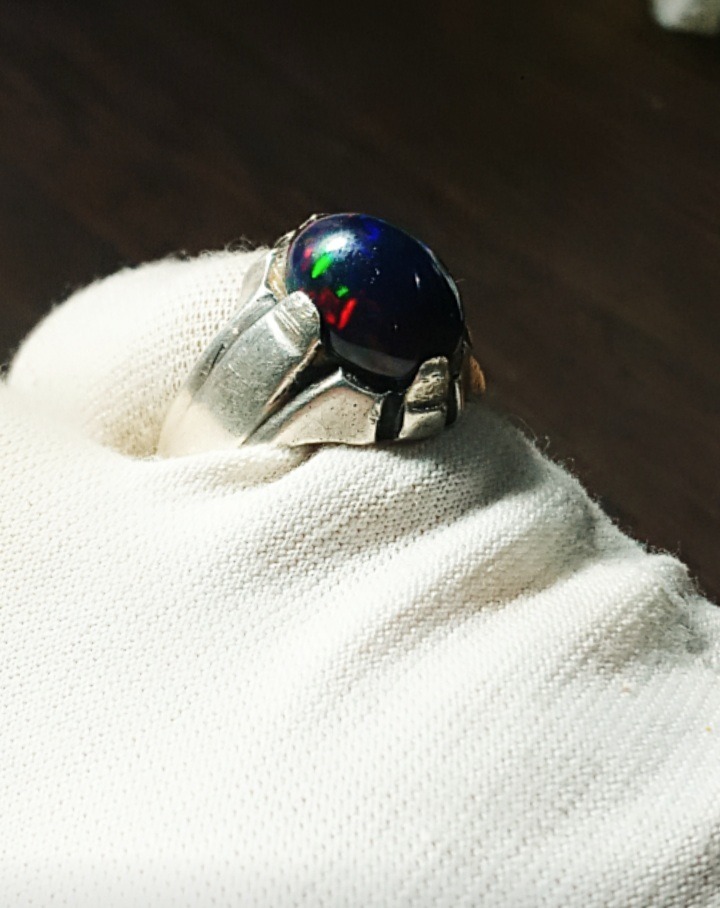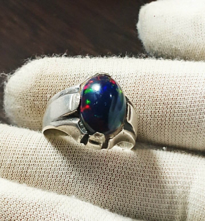 انگشتر خاص و زیبای اپال اصل اتیوپی سنگ خاص با رفلکس و تلالو بی نظیر و اتشین فول رنگ