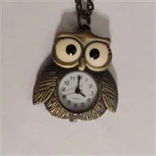 گردنبند فلزی (برنز)، طرح جغد (ساعت جیبی)
