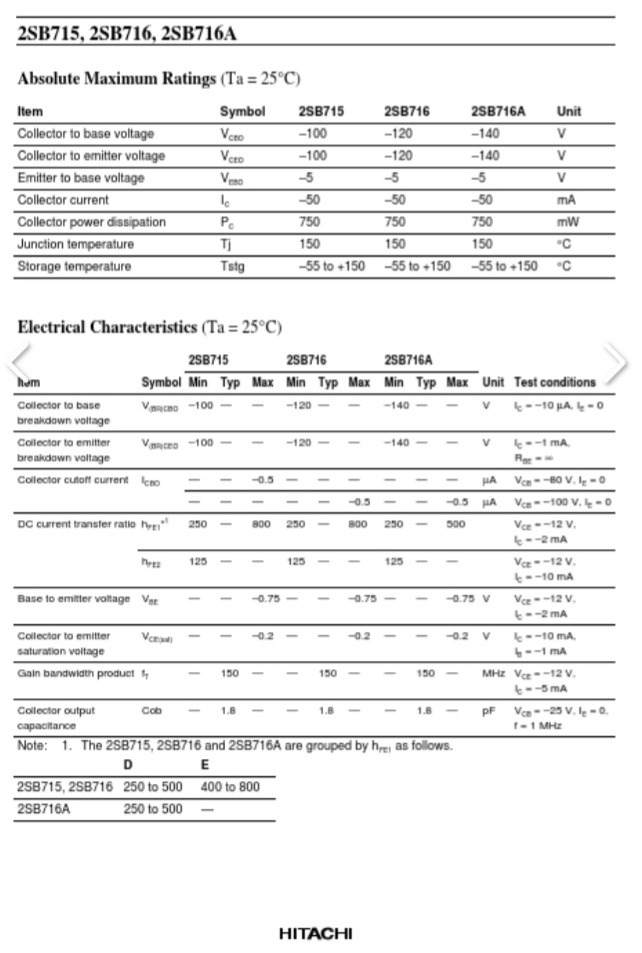 ترانزیستور 750mW/hfe800 2sB716 ساخت هیتاچی