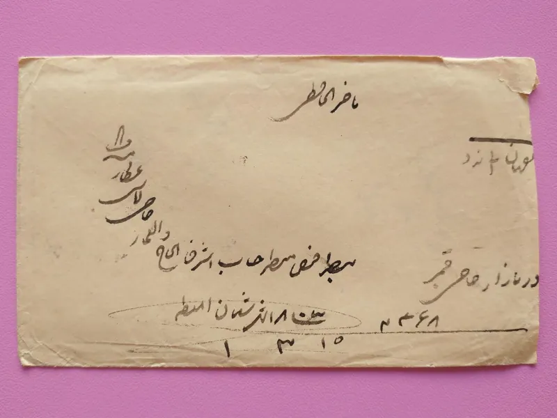 پاکت و سند تاریخی دوره ناصرالدین شاه خطی زیبا 1271