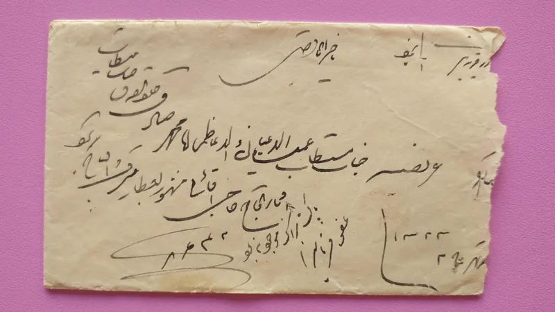 پاکت قدیمی دوره مظفرالدین شاه با خطی زیبا سال 1283