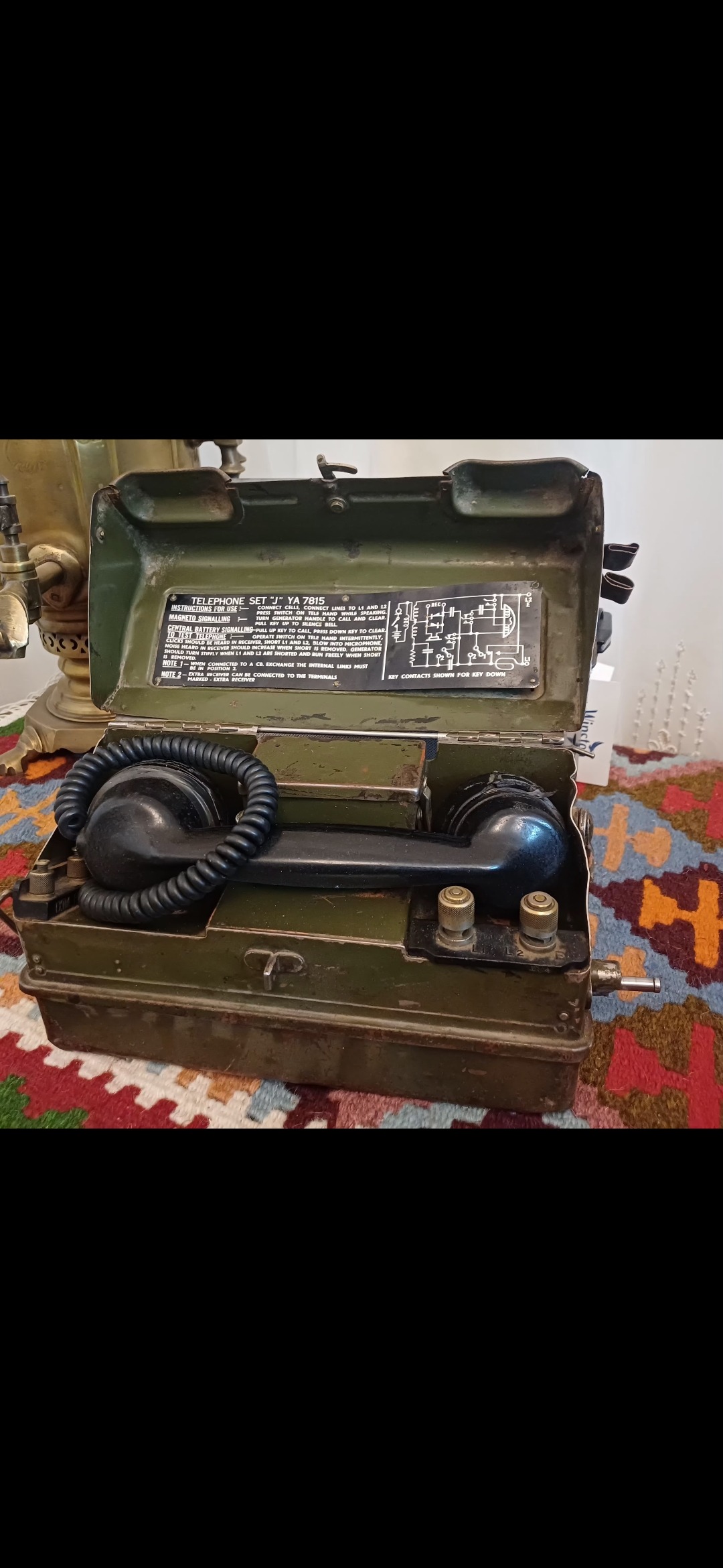 تلفن قدیمی هندلی صحرایی متعلق به جنگ جهانی دوم کلکسیونی