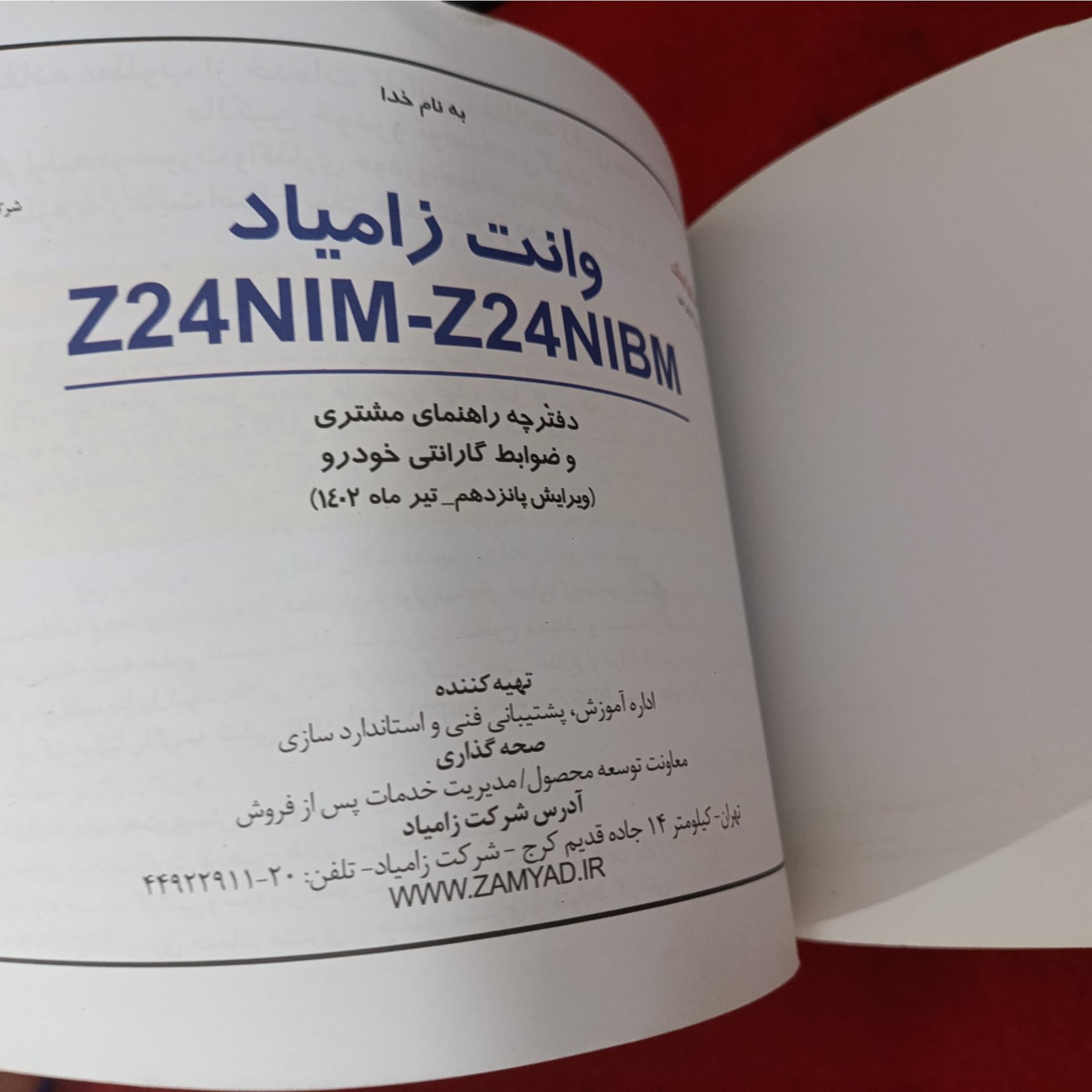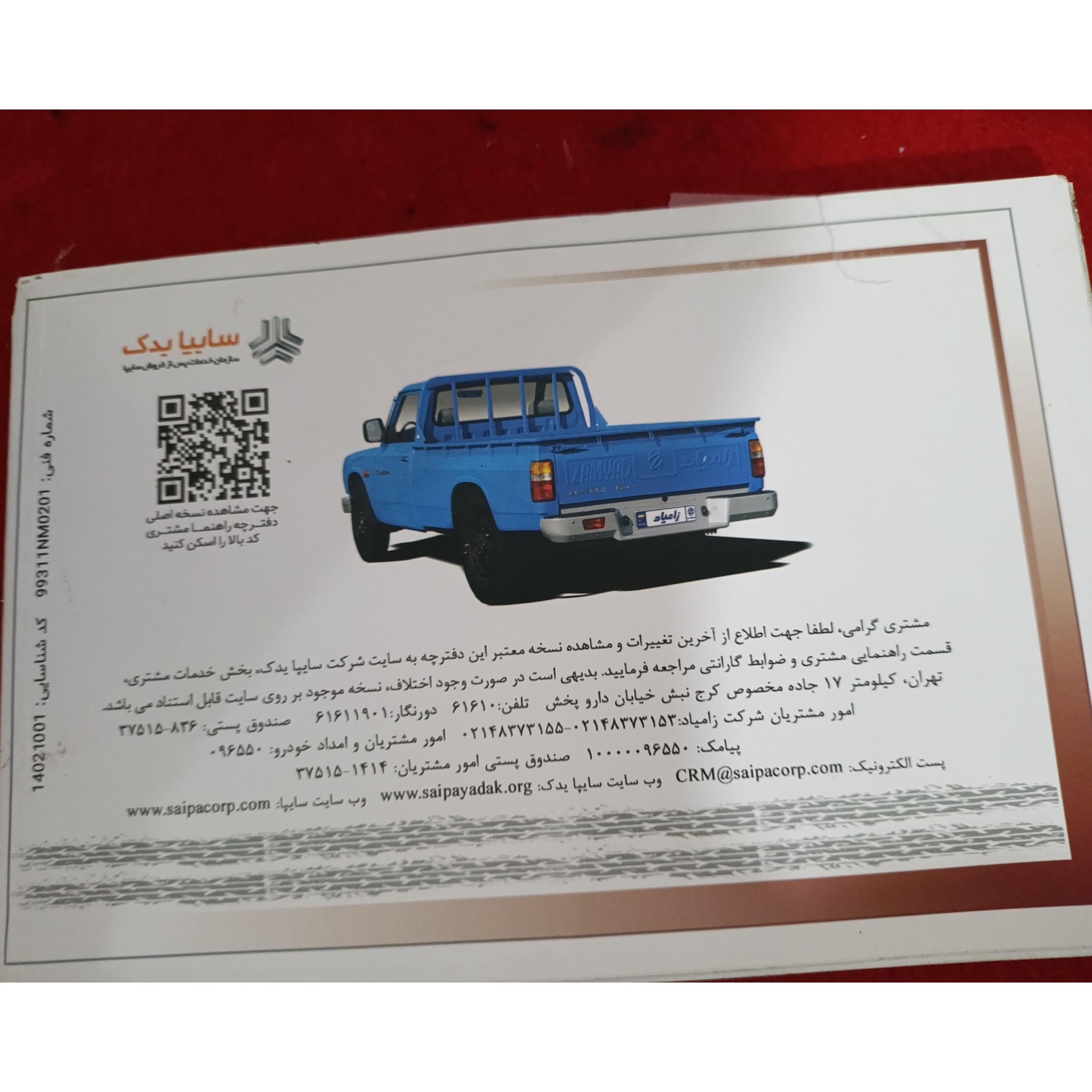 دفترچه راهنما نیسان وانت زامیاد گارانتی توضیح
